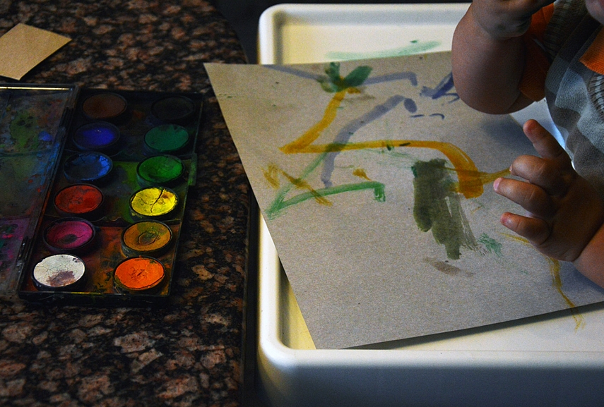 Pagaliau ir Matas (1,1 m) dažus ne vien tik valgo, bet ir ant popieriaus teplioja: