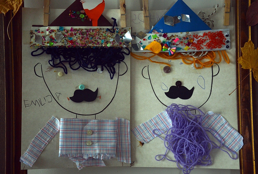 Buvo ūsai. Prisikvatojom su Emilija iki numirimo (Sofija, deja, dar prisibijo juoktis pati iš savęs). Iš juodo popieriaus prisikarpėm visokių formų ūsų (Dali, Stalino, Hitlerio, Čaplino, Hulk Hogano... ir t.t. - čia jums suaugusiems užuomina).. klijavom su dvipuse lipnia juosta po nosim... žiūrėjom viena į kitą ir kvatojom. Nuotraukų neviešinsiu, tačiau labai rekomenduoju išbandyti namie. Aurimas visą šitą pimpirimpam irgi užskaitė – trumpam užlėkės namo arbatos ir pats ūsus klijavosi ir Emiliją dar daugiau juokino.