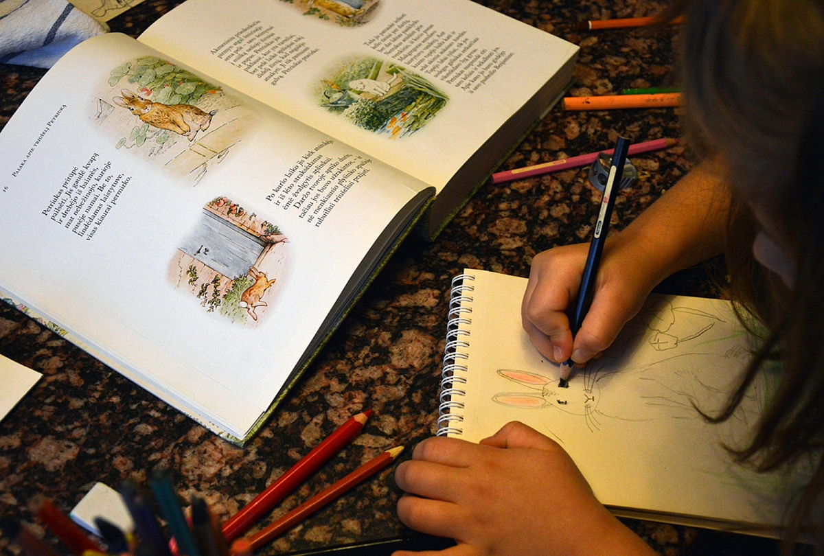 Literatūra. Perskaitėm tikrą komedijos šedevrą! B.Potter „Paštetas ir alavinis kaušėlis“ – nerealiai. Na, vaikai mano komiškų elementų nepagavo, bet aš balsu kvatojau skaitydama. Genialu! Be to, baigėm „Lesę“ (gerai, kad prieš pradėdama aš pati sau perskaičiau paskutinį puslapį, nes bučiau vietomis įtampos neatlaikius...). Pradėjom E.B.White „Stiurtą Litlį“ (šis autorius dar yra parašęs „Šarlotės voratinklį“). Džiaugiusoi, kad ir Sofija pradėjo po truputį gaudytis sudėtinguose istorijos vingiuose. Beskaitydama vis patikrinu, ar jos suprato, kas istorijoje įvyko. Užduodu kelis klausimus. Vaikai atsako. Važiuojam toliau.