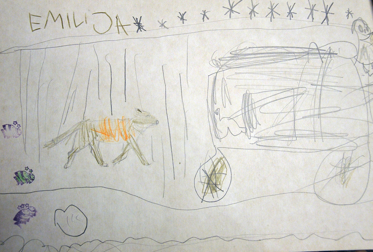 Taigi U. Buvo ugnis. Paprašiau Emilijos prisiminti, kaip galima užgesinti ugnį. Štai jos atsakymai: su smėliu, su vandeniu, galima užpūsti. Na o mes dar bandėm užgesinti ugnį su CO2. Yes!! O buvo taip. Viena dieną Aurimas man parodė bandymą su žvake, soda ir actu (taip mielieji, būtent taip romantiškai mes leidžiame laiką be vaikų). Esmė tokia: kai sodą užpili actu, ji pradeda putoti (arba putoja actas... na vienas iš jų arba jie abu putoja), išsiskiria CO2, tuomet per ilgai nedelsiant indą, kuriame vyksta ši nuostabi sumaištis palenki virš žvakės (ne per daug – nereikia žvakės užlieti, o indą pakreipti tiek, lyg piltumėt nematomą kažką..) ir žvakė užgęsta... lyg užlieta. Taigi aš buvau apšalus. Vaikų tačiau mažytė žvakė nenustebino. Todėl teko paimti metalinį indą, sukraut į jį daug degtukų (dvi dideles saujas), uždegt ir tada bandyt tą visą grožį užgesint nematomu CO2. Pavyko! Užskaitom!! Turiu omeny – wow. Pasijutau taip, lyg niekada gyvenime nebūčiau buvusi nei vienoj chemijos pamokoj. Man tai nauji vandenys. Bandymą bandėm keliolika kartų...kol nei acto, nei sodos nebeliko ir namai nusmirdo svilėsiais. O beje... paprašykit vaikų bestebint ugnies liepsnas papaskot, kokias spalvas jie mato. Šiaip, įdomu, kaip veikia vaikų fantazija. Emilija vėliau ugnį ir visą eksperimentą dar ir nupiešė.