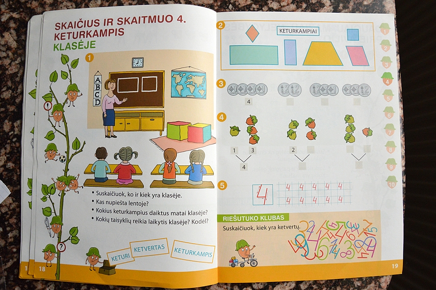 Skaičius ir skaitmuo 4. Keturkampis. Klasėje
