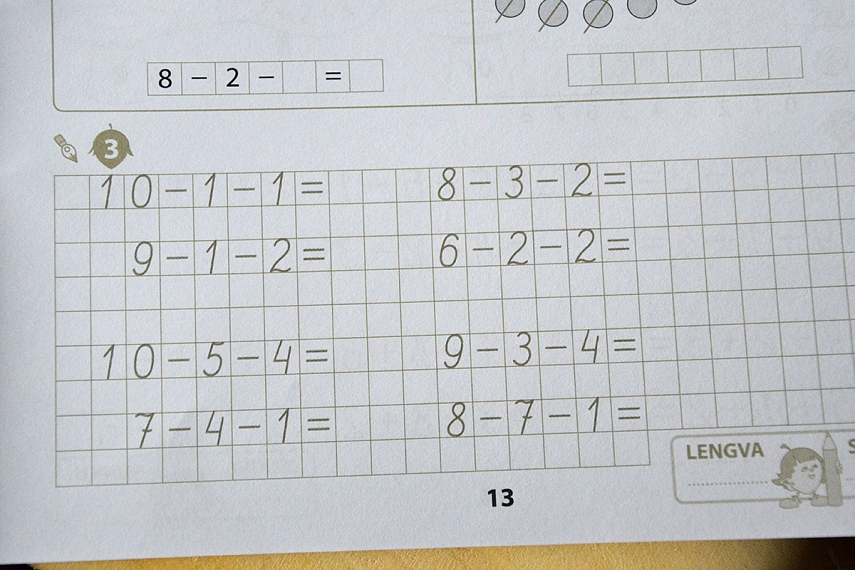 Tiesa jau nuo pirmų pamokų vaikų pratybos atrodo štai taip: