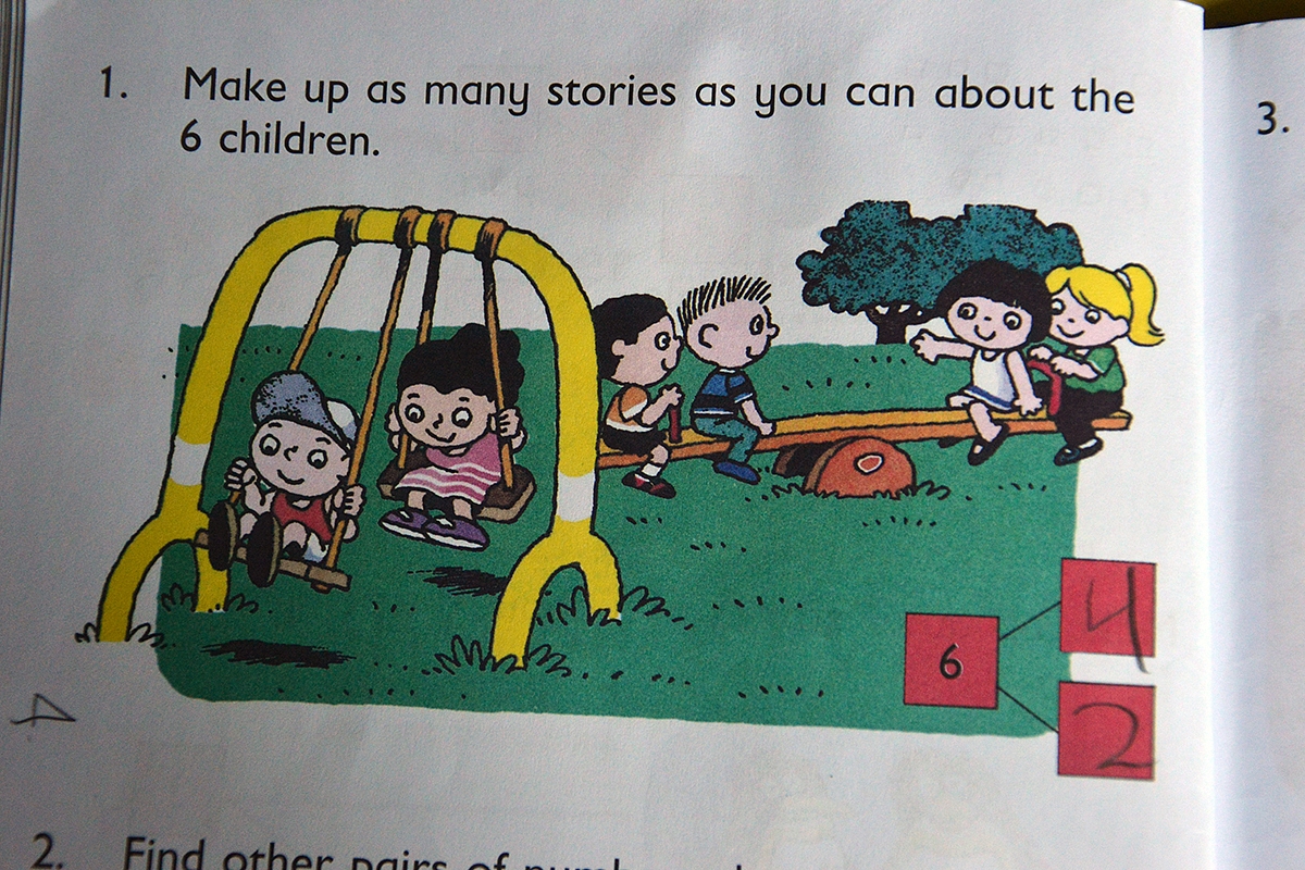 Pirmoje klasėje vaikams pristatomas daugybės dalykų kratinys (daugeliu atveju perkrautas bereikalingo triukšmo) ir baigia vaikai sudėtimi iki 100: