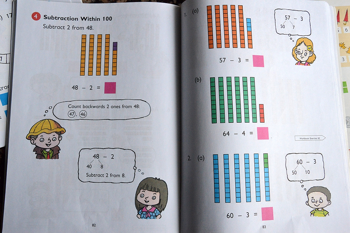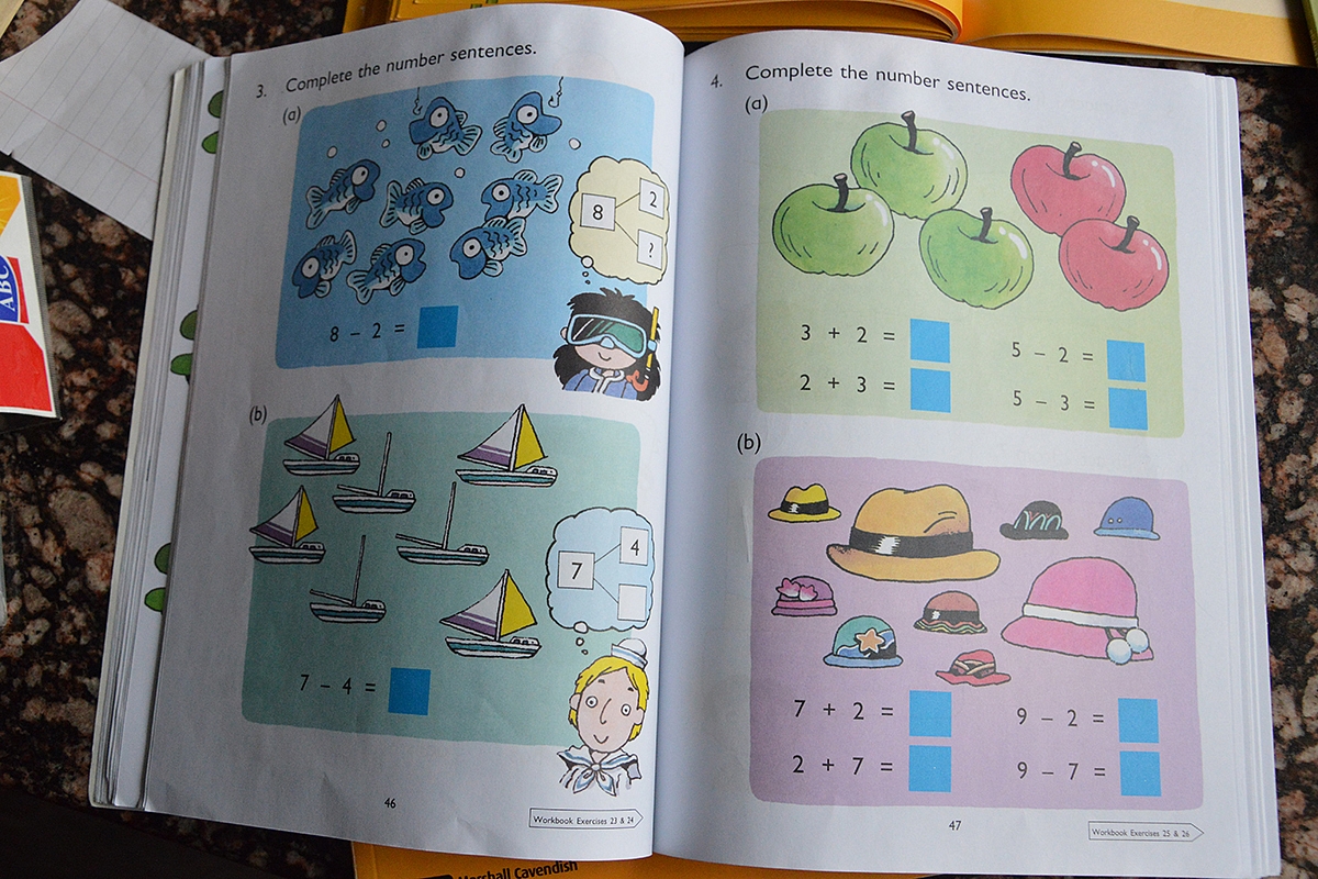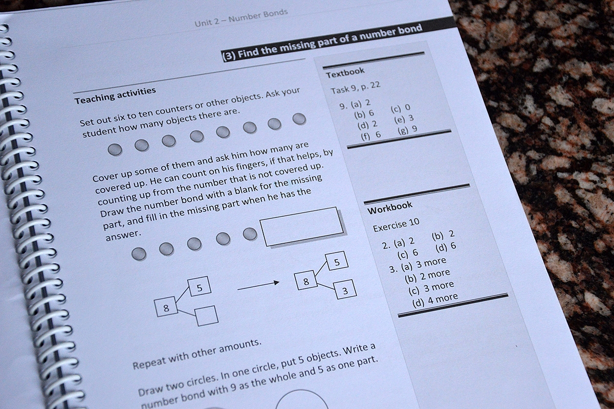 Taikykite Singapore Math programos principus net jei vaikas (galbūt kai kuriuos principus galima pritaikyti ir jau ūgtelėjusiems mokiniams) mokinasi iš standartinių vadovėlių: