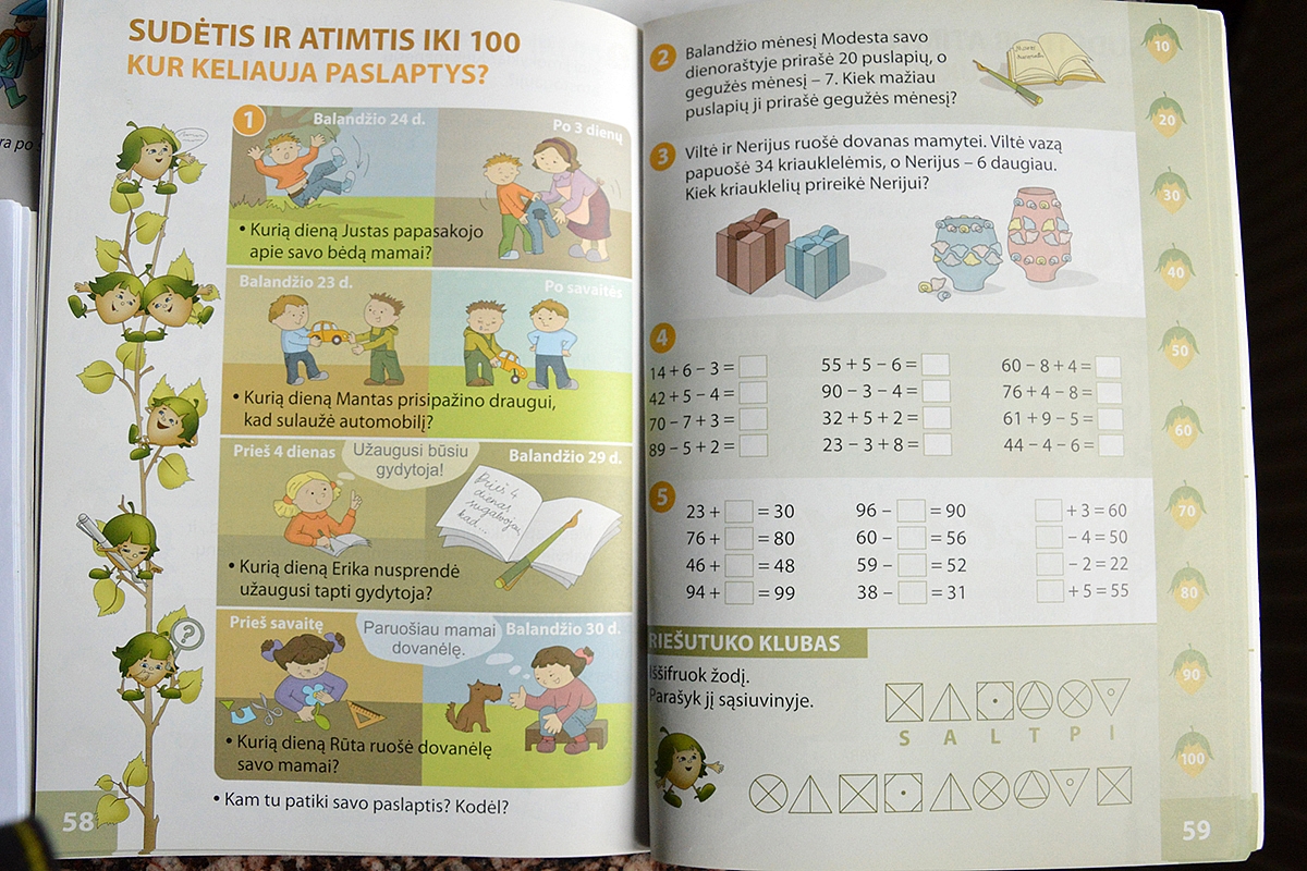 Palyginimui Singapore Math pirmokams ir lietuviškas Riešutas pirmokams:
