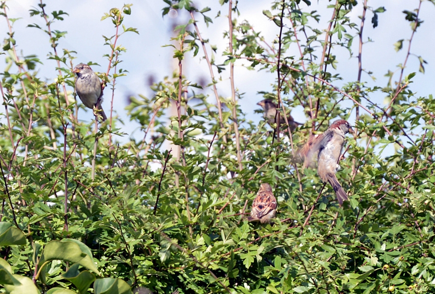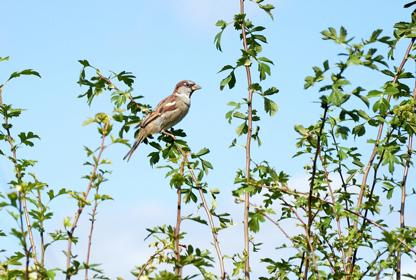 Beje, kalbant, apie paukščius, pagaliau pavyko nupyškint kiemo žvirblius. Jie tikri pasalūnai... Jų daug, jie triukšmingi, jie smagūs, jie būtų fotogeniški, jei tik leistų juos nufotografuoti. Aurimas pasiūlė pasistatyti kieme vaikišką palapinę, sulįst iki pusės (nes visa netilpsiu), sienelėje pasidaryti skylę fotoaparatui ir laukti, kol jiems nusibos tūnoti tankioje gudobėlėje ir jie išlįs laukan pažaisti... Jei turėčiau bent truputi laisvo laiko...taip ir padaryčiau. Šiam kartui galiu pasidalinti tik tokiu kapitono žvirblio portretu..