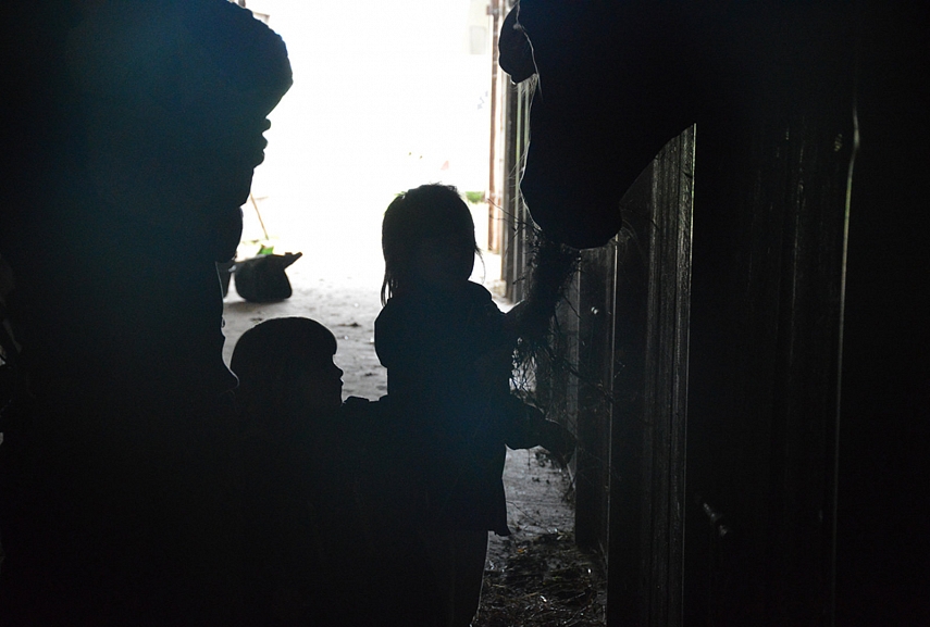 Kelionę vainikavo apsilankymas Rietavo žirgyne. Čia lankomės jau kelintą kartą – vieta superinė. Teritorija milžiniška, žmonių nebūna, darbuotojai labai geranoriški (tiesa, aš jų niekada nemačiau, bet Aurimas kaskartą nueina į kontorą pasiklaust, ar gali vaikai arklius ir avis apžiūrėt). Džiūgavo visi trys: ir Emilija, ir Sofija, ir Matas. Arklidėse arklius glostė, maitino, bučiavo, glaustinėjosi. Emilija su kiekvienu arkliu atskirai pasisveikino, vėliau atsisveikino.