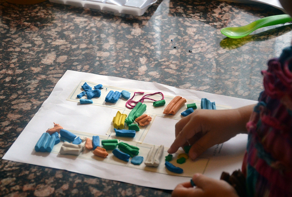 Iš raidės H kontūrų Emilija sulipdė impresionistinį šedevrą – tai hamakas tarp beržų. O Sofija tiesiog lavino smulkiąją motoriką.