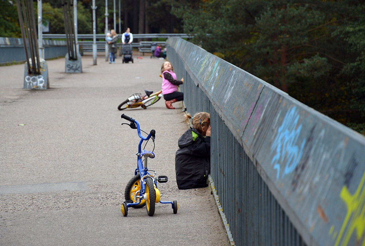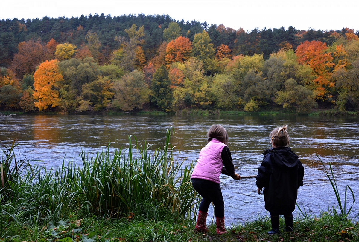 Gamta. Su vaikais iš naujo atradom Vingio parką. Vasarą man ten nepatinka – per daug žmonių, per daug riedučių, per daug dviračių, per mažai paties parko. Bet pabandykit nuvažiuoti ten paprastą darbo dieną (mes buvome pirmadienį), kai visi vaikai išvedžioti į darželius, kiti į mokyklas, tėčiai ir mamos darbuose.... o jei nuvažiuosit rudenį, kai medžių lapai dar nenukritę, tačiau jau sirpsta geltoniu... na gi wow. Vaikystėje Vingio parke praleisdavau daug laiko. Tais laikais tilto turėklai buvo ryškiai oranžinės spalvos. Dabar jie purvinai mėlyni, tačiau tebeskamba taip pat kaip anksčiau. Malonūs prisiminimai. Perėję tiltą pasukom į dešinį keliuką – ten dar mažiau žmonių ir yra vienas smagus priėjimas prie upės. Man dar nespejus nieko pasakyti, ratuota Emilija jau atrado visus reikiamus kelius, išmatavo teritoriją, tad mums su Sofija ir Matu teliko sekti iš paskos. Priėjome prie pat vandens. Vaikai į upę mėtė pagalius, žaidė žvejus. Pasižadėjom kitą kartą pasigaminti ir į parką atsinešti popierinius laivelius. Smagų rytą vainikavo pasibuvimas žaidimų aikštelėje – ne Vingio parkinėje, o šiapus tilto. It vyšnia ant pyrago...