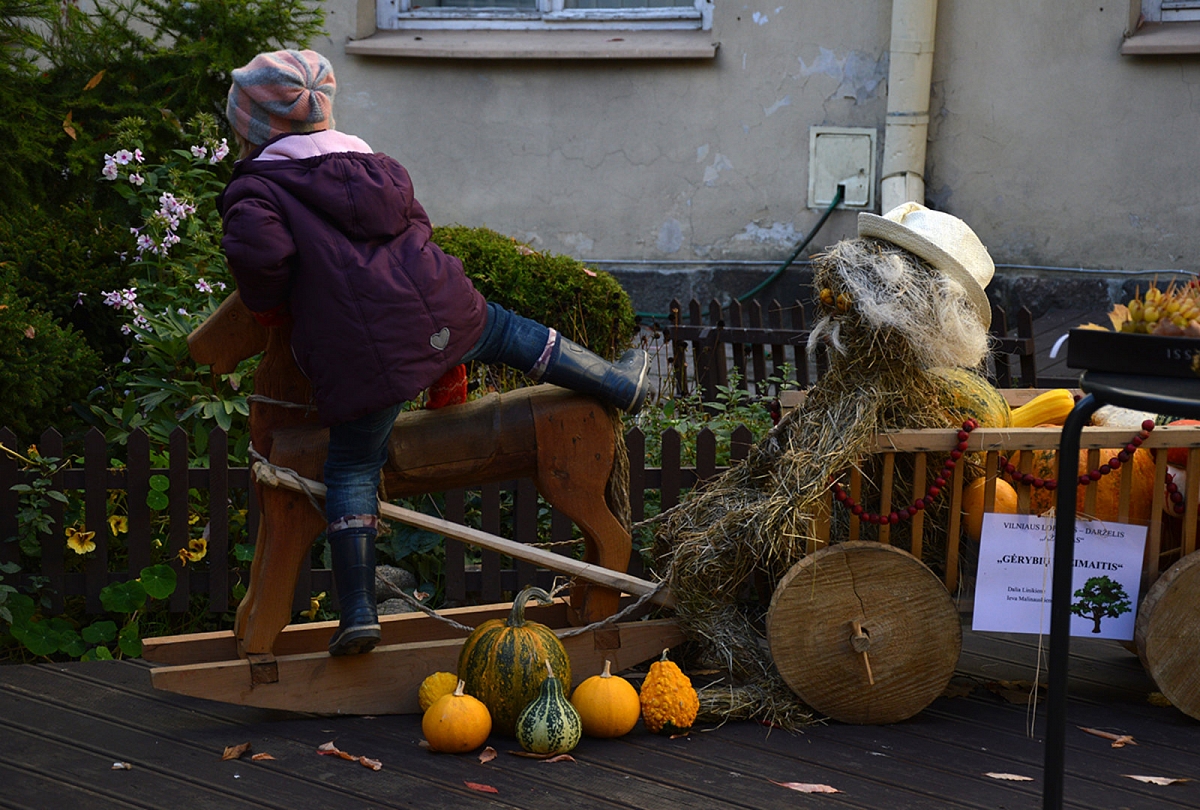 Muzika. Atsakingai ruošėme Kindermusik namų darbus (nors pasirodo paruošėm visgi ne tą, ką reikėjo...). Mokėmės choro giesmių. Bepaišydami rudeninius lapus, klausėmės Vivaldi „Rudens“. Emilija vis prašo manęs išmokyti ją groti fortepijonu. Nusprendžiau šiam kartui pamiršti Hoffman Academy (nemokamos pianino pamokos internetu). Kindermusik mokytoja parekomendavo susirasti Suzuki fortepijono mokytoją Vilniuje. Bandysim.