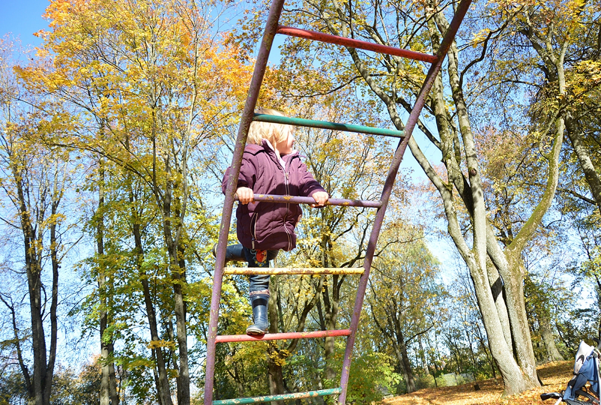 Dabar Čili bus pačiu laiku, pagalvojau sau. Bet ten, kur aš tikėjausi rasti Čili... nieko nebebuvo. Nesumojusi, kur ir kaip ir ko ieškot, užsukau į pirmą pasitaikiusį ... London Grill. Ten, kur lankosi tikri suaugę žmonės... be vaikų... ir pietauja skambant house muzikai.. ir apsirengę jie stilingai (ne su dryžuotom pižaminėm kojinėm ir chalatine suknele, kaip kad buvau apsirengusi moi). Tuo metu manyje užvirė kažkoks keistas išdidumo-arogancijos kokteilis, pavadinimu „vat žiūrėkit, kaip aš moku, o jūs nemokat“. Su trim vaikais (vienas iš jų tiesioginia to žodžio prasme – kaip rankinukas po pažastimi) prasibroviau į ramesnę vietelę. Įsitaisėm. Užsisakėm. Vaikai šilkiniai. Sėdi tyliai ramiai, varto knygutes. Mano išdidumo-arogancijos kokteilis jau nebe kokteilis, o ištisas katilas! Bet tada atnešė maistą... Ir mano išdidumas subliuško it balionas. Vaikai sriubų nesuvalgė... Antro patiekalo nuvalgė tik bulvių kroketus. Matas netikėtai ėmė raitytis ir žviegti (ne klykti, o žviegti...). Aš viena ranka laikau Matą, kita ranka jam duodu bulvių kroketą, o trečia (tam kartui išdygo) sinchroniškai gaudau jo spjaudomą maistą. Matui dygsta dantys. Matas pyksta, kad kroketo nesukramto. O supykęs cypia, staugia, ūžia. Ant viso restorano. Visų žmonių akivaizdoje. Tą akimirką svajojau: a. išnykti kaip nors kur nors arba b. kad šalia būtų Aurimas. Neįvyko nei pirma, nei antra, o atsitiko trečia: vaikai užsimanė į tualetą – čia ir dabar. Ir vandens – čia ir dabar. Norėjau verkti, bet nebuvo laiko, nes Sofija jau buvo bedaranti čia pat ant žemės, o Matas staugė man tiesiai į ausį (tą, kuri man padeda mąstyti). Kai galvojau, kad numirsiu, atsitko ketvirta: Emilija ramiausiai viena pati nuėjo į tualetą, grįžusi paėmė Sofiją už rankos ir nuvedė ir ją. Mano šaunioji Emilija. Kokia dėkinga jai buvau tą akimirką. „Kaip suradai tualetą?“, paklausiau jos vėliau, kai išėjom į lauką. „Taigi ta moteris man pasakė, kad eičiau tiesiai ir į kairę. Tai aš ir nuėjau tiesiai ir į kairę..“. Va čia... va čia – sustok akimirka žavinga, nes aš buvau tikrai laiminga! Džiaugiausi savo augančia dukra... nors tu ką. Taigi viskas baigėsi gerai. Nesuvalgytą curry chicken iešmelį su marinuotais griliuje keptais burokėliais ir bulvių kroketais parnešiau namo Aurimui. Užskaitė. O pati išmokau svarbią pamoką: nesididžiuok, nesipūsk ir nešok aukščiau bambos. Beje mano santuokų rūmų parkingo numeris visai suėjo – eidami link mašinos užklydom į tokį idilišką auksiniais lapais nuklotą kiemą-aikštelę. Ten surengėm tikrą lapų puotą ir tikrą rudeninę fotosefiją.