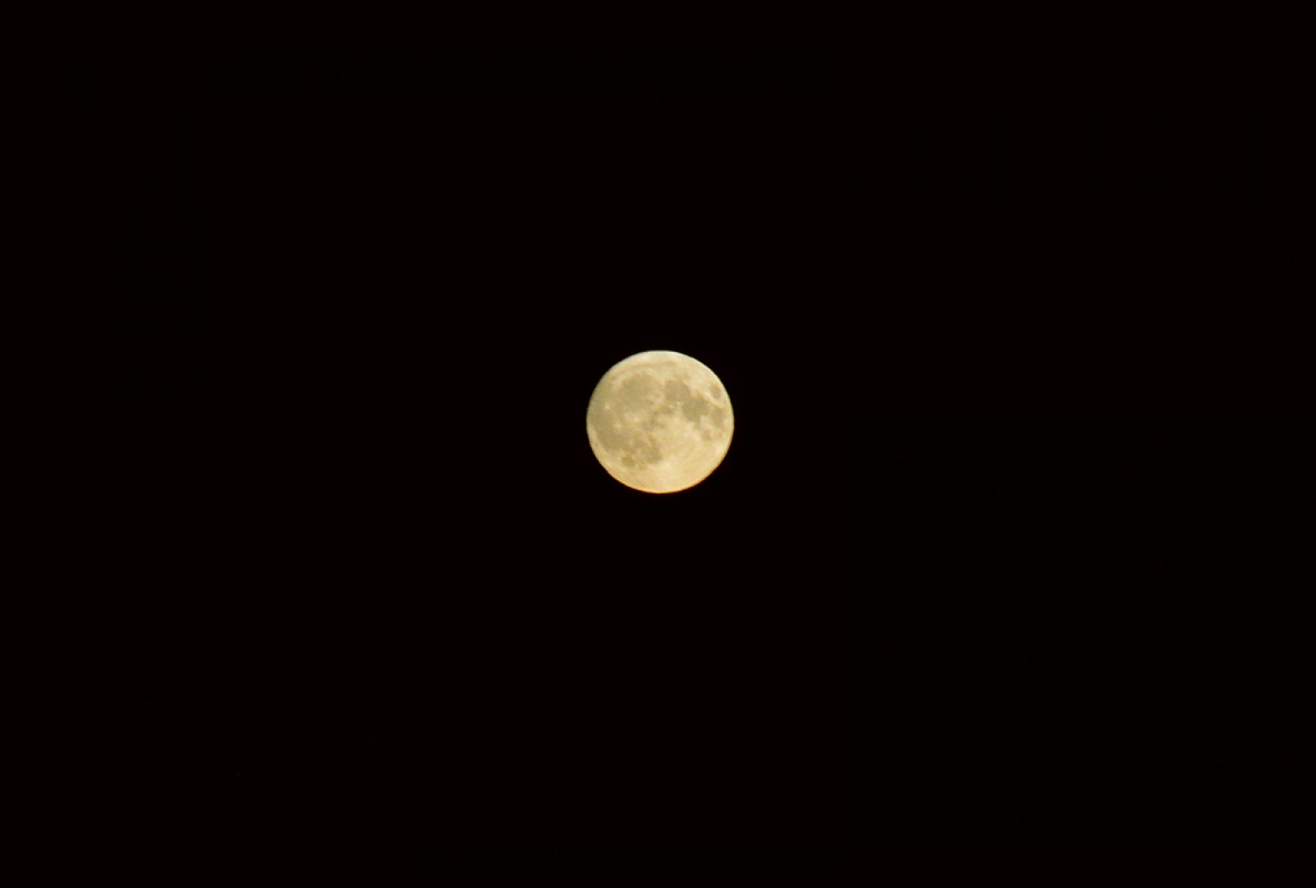 Gamta. Vieną dieną maudėmės lapuose. Kitą dieną buvome miške. O šiaip šmirinėjom aplink namą, savo kieme. Tačiau vieną vakarą visgi leidomės į nuotykį. Jau pavargę po ilgos dienos miške ketinom ramiai praleisti vakarą namuose. Gal kokį filmuką, gal kokią knygutę, gal šiaip laiką prastumti. Žinot, tie slow vakarai. Bet staiga – o wow!! – lange pamačiau oranžinį blyną. Mėnulis! Pilnatis! Kadangi aną kartą menulį pražiopsojau, šį kartą ketinau jį prigauti: kaip kulka griebiau fotika, per vieną sekundę įkalbėjau Aurimą nuvežti mus ant kalno, aprengiau vaikus. Kitą akimirką mes jau mašinoje - vaikai ploja katučiu, Matui visi miegai išsibėgiojo, aš cypčioju lyg maža mergaitė, Aurimas įtampos užkrėstas spaudžia gazą. Vaikai šukčioja: „Skubam, skubam, nes mėnulis tuoj nusileis“. Užlekėm mes ant kalno (tokio, nuo kurio matosi visa Vilniaus panorama... ir mėnulis..) ir gerėjomės. Verta buvo pajudėti. Deja per skubėjimą nepaėmiau štatyvo, todėl nufotografavau tik menulio blyną.