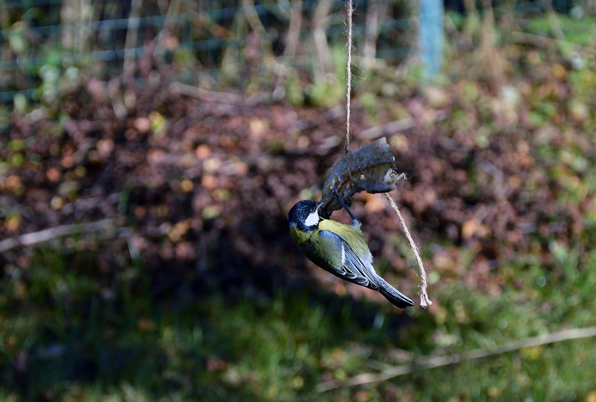 Beje mūsų lesyklėlės atsipirko: kasdieną kiemas pilnas puotautojų. Stebim savo svečius, vaišinam. Padovanojom paukštukams taip ilgai augintas ir puoselėtas saulėgražų galvas. Zylėms pririšom lašinių. Džiaugsmas nenusakomas.