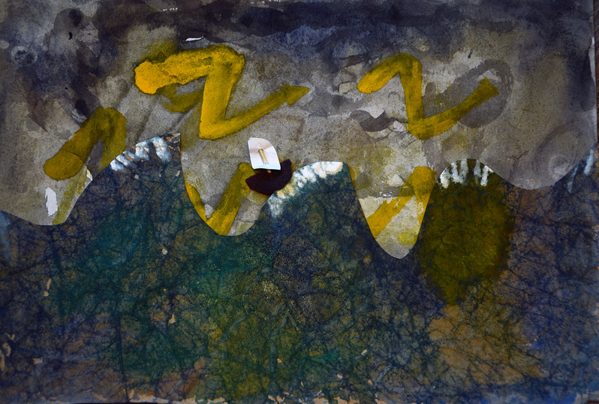 Šis darbelis turėtų būti iš dviejų dalių: audringa jūra ir rami jūra. Šią savaitę įveikėm tik pirmąją dalį. Darbelio esmė – sluoksniai. Šiame jų visi du (vėliau atlikom vieną darbelį su trim sluoksniais). Pirmiausia internete suradau keletą audringos jūros paveiklsų (pvz. Ivano Aivazovskio "Audringa jūra"). Palikau ant ekrano – lai šviečia fone. Tada su vaikais darėm dangų: piešėm kas kaip suprato audringą dangų. Sofijai jis atrodė juodut juodutėlis, aš piešiau kamuolinius debesis, Emilija mėgdžiojo mane, o vėliau improvizavo pati. Paruošę foną, laukėm, kol pradžius. Tuomet ant sausesnio paviršiau tepėm riebius žaibus. Ir vėl – kas kaip suprato. Tuomet dirbinom jūrą. Tam paėmiau gerai sulamdyto popieriaus (perlamdytas daugybę kartų, tačiau pats popierius turi būti ne akvarelinis ir ne kartonas). Iškirpau bangas. Dar kartą apžvelgėm jūrą pavyzdiniame paveiksle. Įvardinom audringos jūros spalvas. Juoda, žalia, mėlyna, balti purslai. Tokią ir piešėm jūrą. Paskutinis etapas: palaukti, kol pradžius, tada nupiešti baltas bangų keteras, suklijuot viską į vieną vietą ir pritaisyti laivelį.