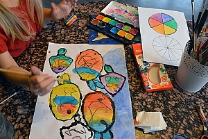 Atsisveikinu su idilišku vaizdeliu... Kai šviečia saulė ir kai visi trys mano vaikai yra be galo tvarkingai ir koordinuotai aplipę stalą... kai pieštukai dar savo vietoj, o rankytės smagiai darbuojasi.. Kai viskas einasi lyg iš pypkės..