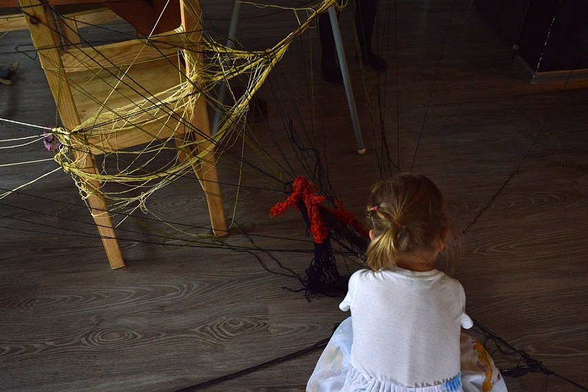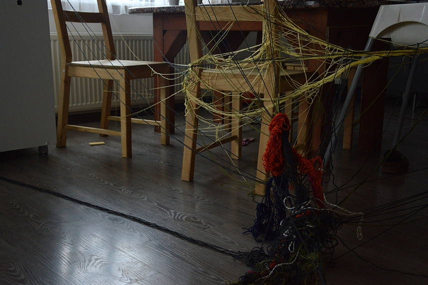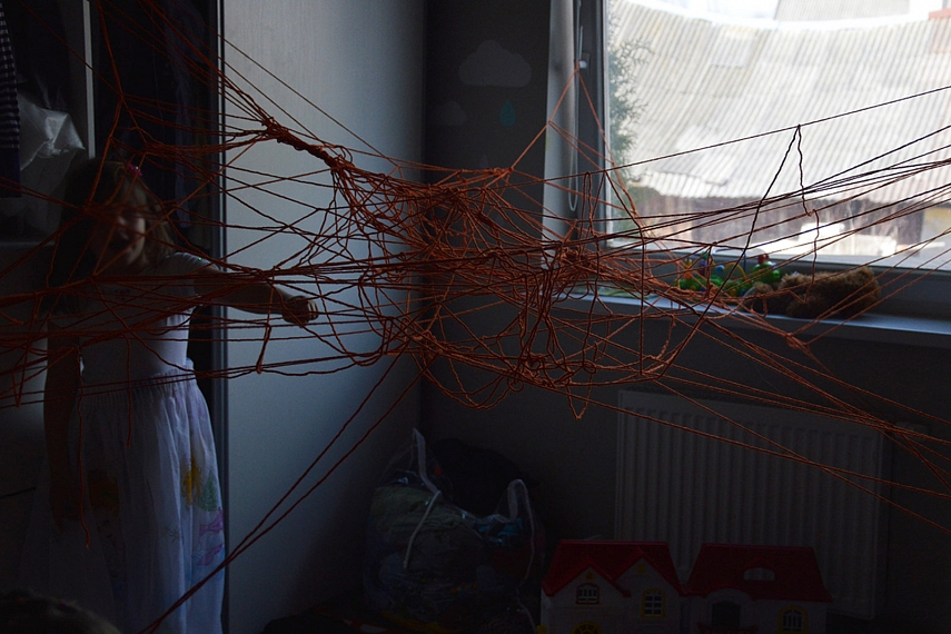 O kai nusibosta piešti, siuvinėti, verti karolius...ir apskritai, kai nagai niežti, kažką nuveikti... Tada reikia austi voratinklį... Tai klausykit dabar. Austi vorantinklį labai smagu - tereikia siūlų ir daug daiktų kambaryje. Tačiau pabandykit paskui tą voratinklį nukrapštyt... Ištisa amžinybė!