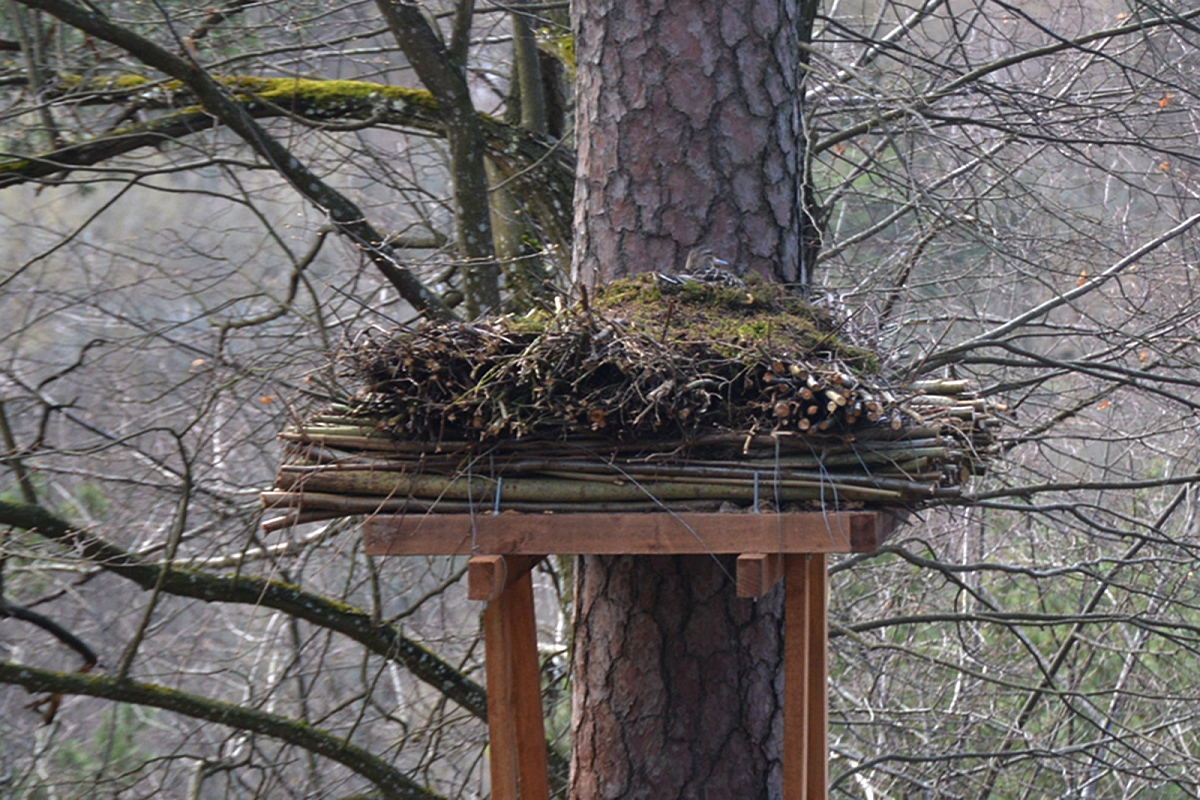 Įdomioji dalis yra štai kokia. Netoli laiptų, vedančių į Verkių malūna, prie aukštos pušies kamieno yra prikalta dirbtinė platforma ir primesta žagarų – kad paukštis lizdą suktų. Žodžiu, visą savaitę „lizde“ nieko nevyko, tačiau paskutines mūsų apsilankymo dienas „lizdą“ pagaliau okupavo... žinote kas? Antis! Pušies viršūnėje.... tolų toliausiai nuo vandens, aukštų aukščiausiai... Antis... Ar taip būna? Gal jai protas susisuko... Gal ji susimaišė? Kaip ten bebūtų – štai turim įrodymą.