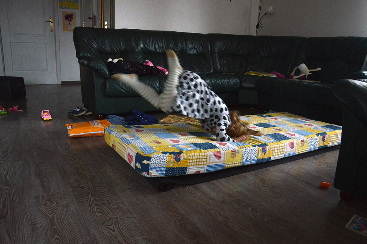 Atradom smagumų smagumėlį - pasirodo, jei iš lovos išėmi čiužinį... ir jį palieki svetainėje ant grindų... Būna taip smagu, kad galima net galvą pamesti.