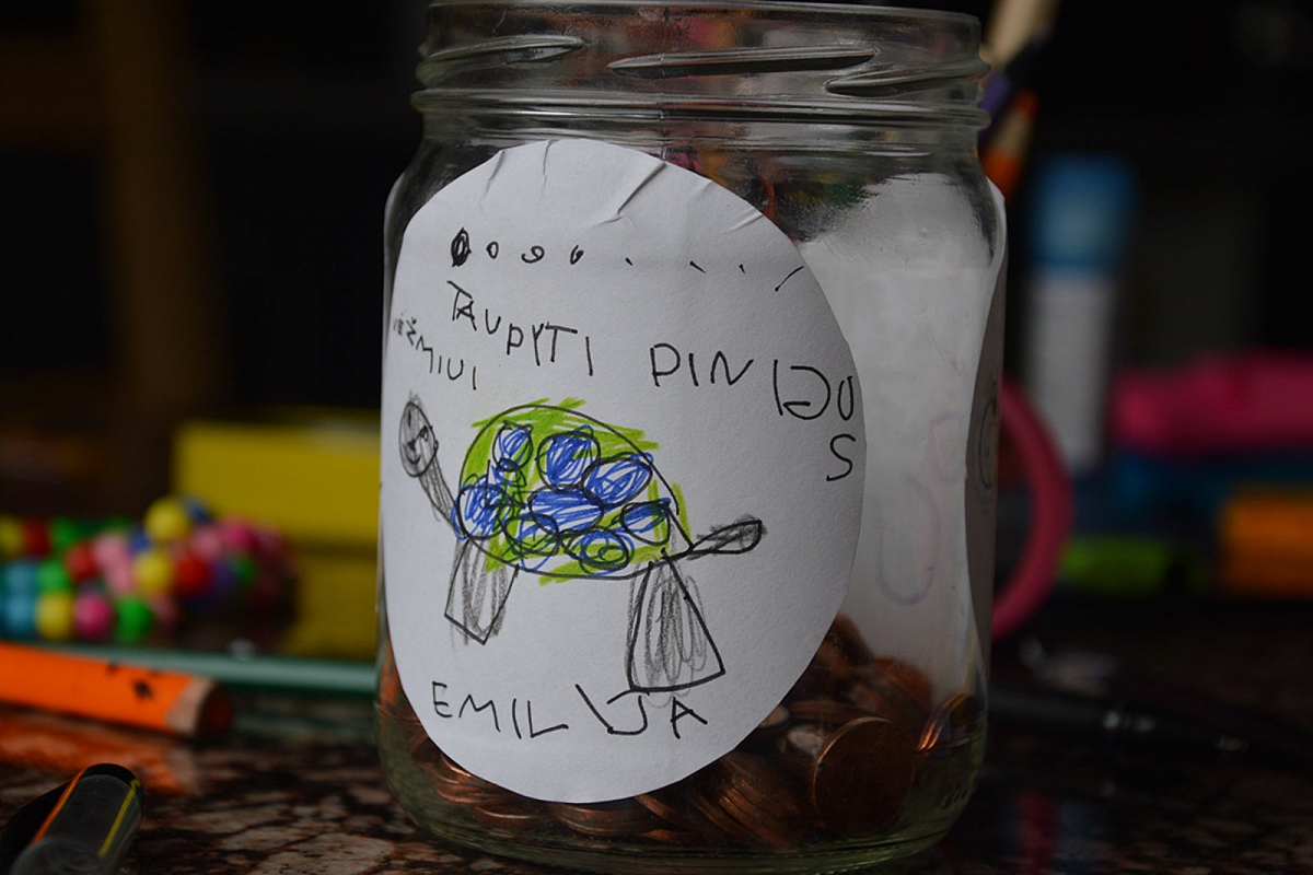 Beje kalbant apie gamtą ir gyvuniją... Ėmėm su vaikais ir nusprendėm įsigyti vėžlį. Kadangi normalus vėžlys kainuoja rimtus pinigus, nusprendėm taupyti. Tam reikalui ir taupyklę pasidarėm. Puiki proga vaikams išmokti kantriai laukti, nes apskaičiavome, kad taupyti reikės du mėnesius. Jei kam įdomu, tai kadangi esam daugiavaikė šeima, iš valstybės kiekvienas vaikas gauna šiokią tokią mizerną išmokėlę. Tai vat tuos pinigus ir dedam į taupyklę.