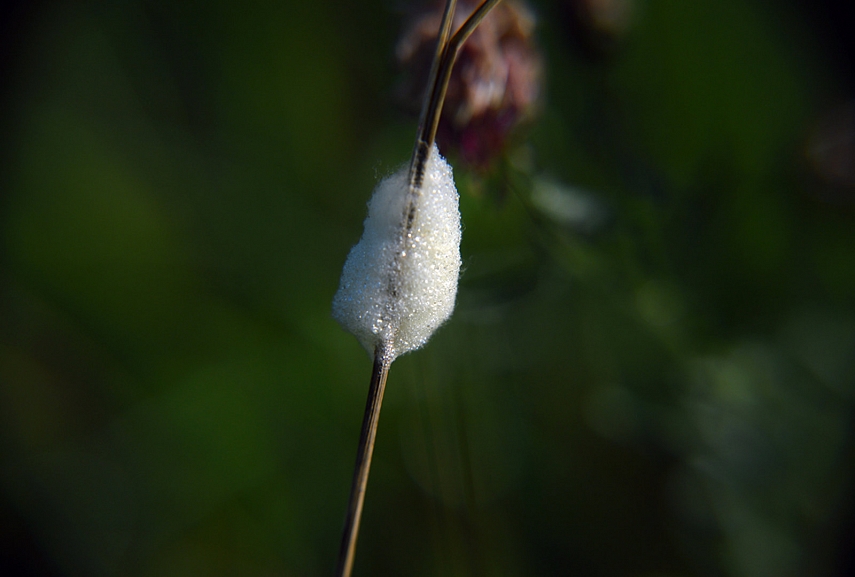 Vieną rytą - ir tai yra bene maloniausia mano dienos dalis - su fotoaparatu braidžiau po vietines pievas. Vakarykštis nuotykis su voriene mane įkvėpė sulėtinti žingsnį ir nulenkti galvą kiek žemiau, arčiau žemės – ten, kur vyksta labai inirtingas ir be galo įdomus gyvenimas. Pievoje, kurioje anksčiau nematydavau nieko, aptikau daugybę naujų ir įdomių dalykų. Be jokios abejonės tie „nauji dalykai“ buvo ten visą vasarą, tik mano akys klaidžiodavo kažkur padebesiais... Radau smilgą su kokonu. Šis kokonas atrodė kiek kitoks nei lygus drugio kokonas, labiau panašėjo į putos gabalėlį prilipusį prie smilgos. Radinio neštis namo nedrįsau – gal dar formuojasi, pagalvojau – todėl įsidemėjau vietą ir pasižadėjau aplankyti jį kitą dieną su vaikais. Žolėse radau dar kelias vorienes su savo kiaušinių maišeliais. Tiesą sakant, vorai manęs vis dar nežavi. Jei internete paieškosite prof. R.Kazlausko knygos Mano augintiniai, ant viršelio pamatysite mylinčio šeimininko rankoje tupintį gigantišką vorą... na ne... man jau geriau didelis naminis vikšrelis.