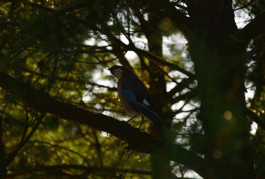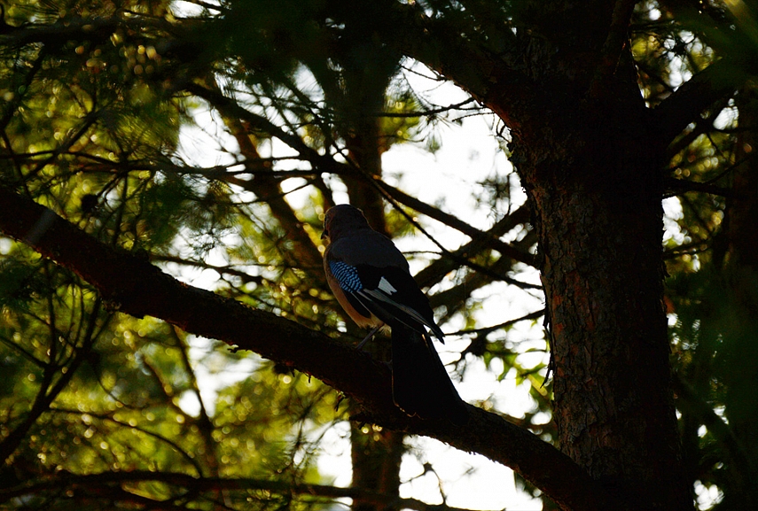 Patupinėjus aplink žolynus, patraukiau namo. Pakeliui namo sustojau prie vietinio ąžuolo, o jame pamačiau vykstant įdomų reginį. Du kėkštai (kaip vėliau paaiškėjo, nes iki šiol nežinojau, kaip gi tas kėkštas atrodo) kovėsi su pora akiplėšų šarkų. Turbūt šarkos vagilės aptiko kėkštų lizdą, pagalvojau. Žinoma, mintyse nusipiešė tragiška šeimos istorija apie mafijozus šarkinus ir kilnią bei taikingą kėkštų šeimą, kurių jauniklius mafijozai ketino pagrobti. Ir jei kėkštų lizdas būtų (jei jis ten toks apskritai buvo) labiau pasiekiamas, būčiau drąsiai stojus į kovą su neteisybe. Nei lizdo, nei sąjungininkų neradau, tačiau gavau puikią progą apžiūrėti kėkštą iš arčiau, nes vienas iš jų (išvargęs po nuožmios kovos su skriaudikais!) nutūpė ant pačios žemiausios medžio šakos. Iš susijaudinimo net pamiršau, kad beveik esu įžengus į svetimų žmonių kiemą, ir sulaikiusi kvapą ėmiau fotografuoti savo naująjį bičiulį. Žinoma, specialaus objektyvo, o ir įgūdžių, neturiu, todėl nuotraukos nesigavo uchti. Bet ši pirmoji pažintis su paukščiais mane iš tiesų sujaudino.