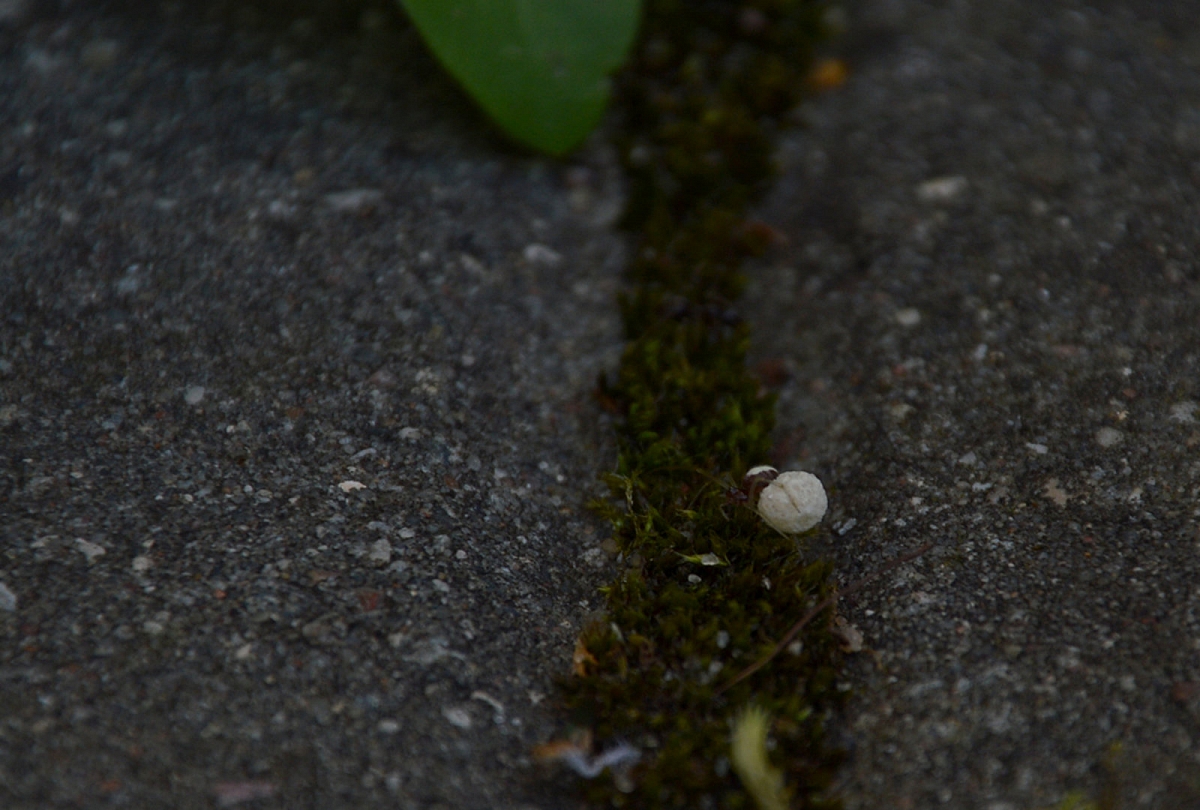 Einu ir žiū - ant grindinio mūsų kieme kažkas balto kruta. Vos milimetro dydžio - bet aš jau išmokau būti pastabi, nes tik žiūrėdamas gali pamatyti stebūklus aplinkoje (ačiū Charlotte Mason..). Pasilenkiau apžiūrėti - ogi tai mama vorienė neša savo kiaušinių maišelį (štai kaip pravertė Šarlotės voratinklis!).