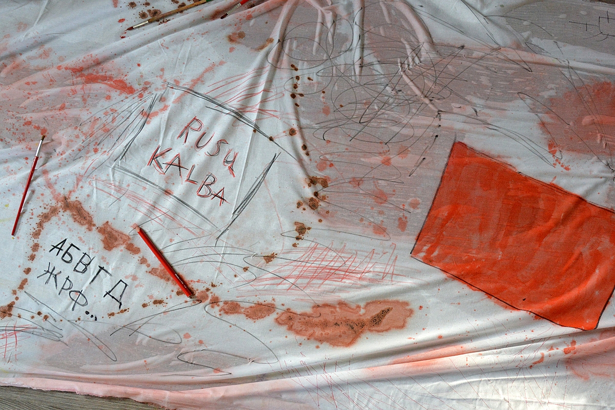 Jei neužduodame ir neatsakome į šiuos du klausimus, tuomet, mano nuomone, pasakoti apie knygnešius vaikams yra bergždžias reikalas. Todėl vienas pagrindinių tikslų buvo aiškiai vaikams perteikti okupacijos (t.y. nelaisvės) prasmę. Bandžiau saviškiams ir piešti, ir vaidinti - sunkiai ėjosi. Vaikams sunku pagauti neapčiuopiamų dalykų kampą. Emilijos paklausiau, kas yra nelaisvė, ji man atsakė: "Nelaisvas žmogus yra tuomet, kai surakintas, kai sėdi kalėjime arba kai serga (suprask, kad sukaustytas ligos - kaip šešiametei nebloga mintis)". Pradžia nebloga. Toliau aiškinomės, kad nelaisvi gali būti keli žmonės, kelios šeimos, ištisas miestas (priminiau neseniai skaitytą Jericho miesto istoriją iš Biblijos), taip pat nelaisva gali būti visa šalis. Emilijai parūpo sužinoti, kaip tas atrodo, juk šalis per didelė, kad ateitų kariai ir apgultų visas šalies sienas. Paėmiau skarą ir sakau: "Žiūrėk Emilija, įsivaizduok, kad į šitą skarą aš įsiuvau viską, kas tau patinka (kalba, dainos, tavo gimimo istorija), tai tavo tapatybė, tai esi tu." Apgaubiau Emilijos pečius. "O dabar įsivaizduok, kad ateis prie tavęs kita mergaitė, nuplėš tavo skarą nuo pečių ir uždės savo skarą. Ir pasakys, kad nuo šiol tu privalai nešioti tik jos skarą. Tavęs nebeliks, ar ne? Na, tu liksi, bet neliks svarbios tavo dalies". Emilija kampą pagavo. Todėl ir ėmėm piešti didelę skarą Lietuvai. Turėjau tam reikalui tinkamos medžiagos, tad ir piešėme visi kartu.