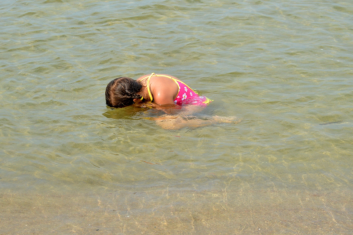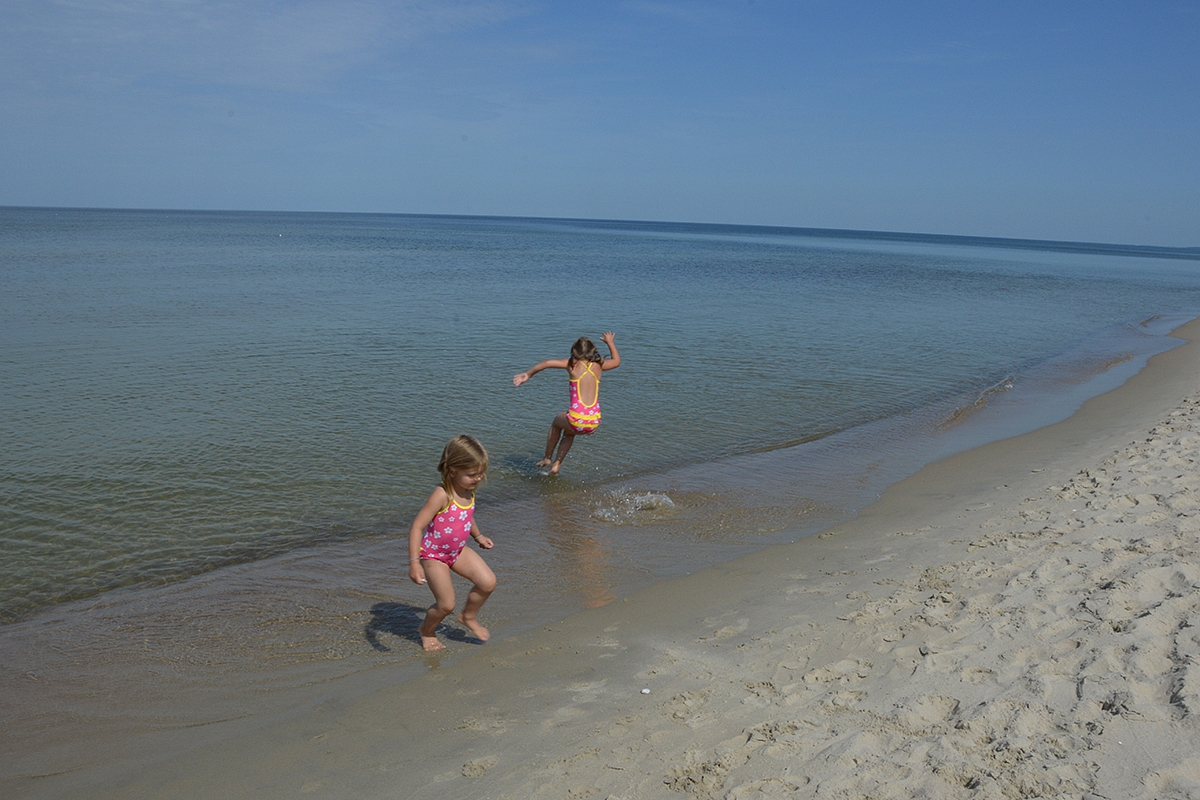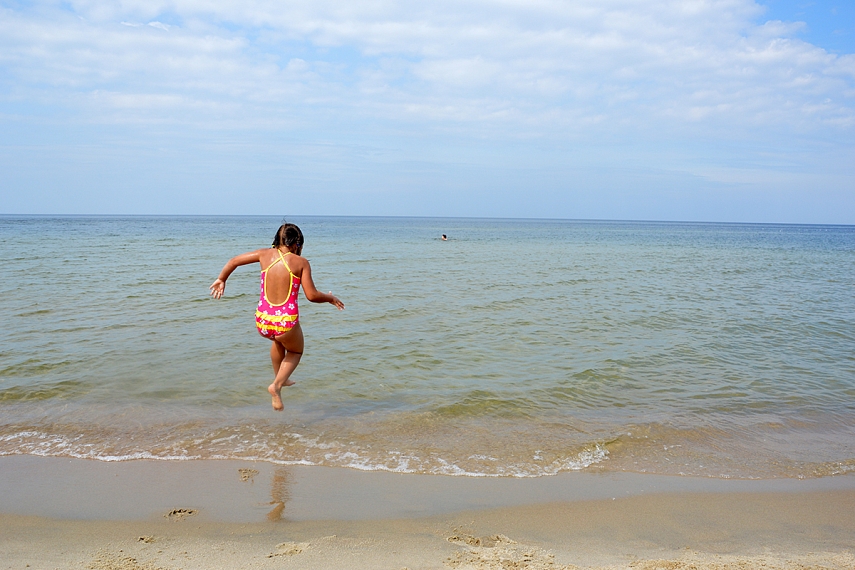 Taigi, Krynica Morska, tu nuostabi jūros kriaukle, radom tavo perlą! Krepšius pasistatėm ir pirmyn į jūrą, pirmyn į bangas. Mūsų šeimoje esam pasiskirstę taip: aš ir Emilija galime būti vandenyje tol, kol neateina naktis. Aurimas ir Sofija labai greit sušąla, todėl jie labiau mėgsta kaip katinai šildytis saulutėje. Matas dar per vidurį. Jam gerai ir taip, ir taip. Po pirmųjų šėlsmo akimirkų, kiekvienas milžiniškame tuščiame papludimyje randa sau užsiėmimą. Taip ir turi būti. Nuostabi diena.
