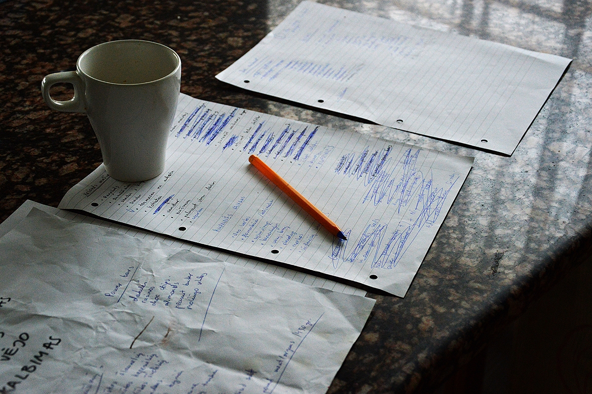 Pirmiausia paėmiau baltą lapą (tris lapus...) ir ant jo susirašiau visus įmanomus scenarijus (taip, aš būtent taip ratais kvadratais planuoju savo atostogas... keistuolė.)