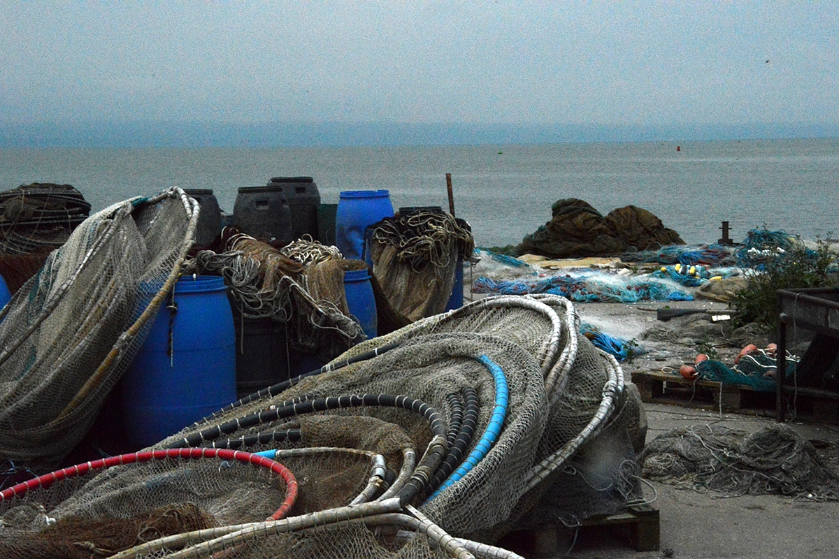 Be to, Krynica Morska - žvejų miestas. Pakrantėje aptikome žvejų prieplauką su visais tikrais žvejybiško gyvenimo atributais.
