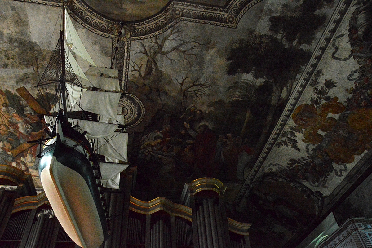 Tiesa, kažkurią dieną ryte aplankėme gražią bažnytėlę Stegnoje. Ji ten vienintelė ir ji buvo mano sąraše.. Tad pliusiuką užsidedu. Norėjau ją aplankyti dėl freskų ant lubų (freskų?)..