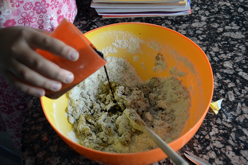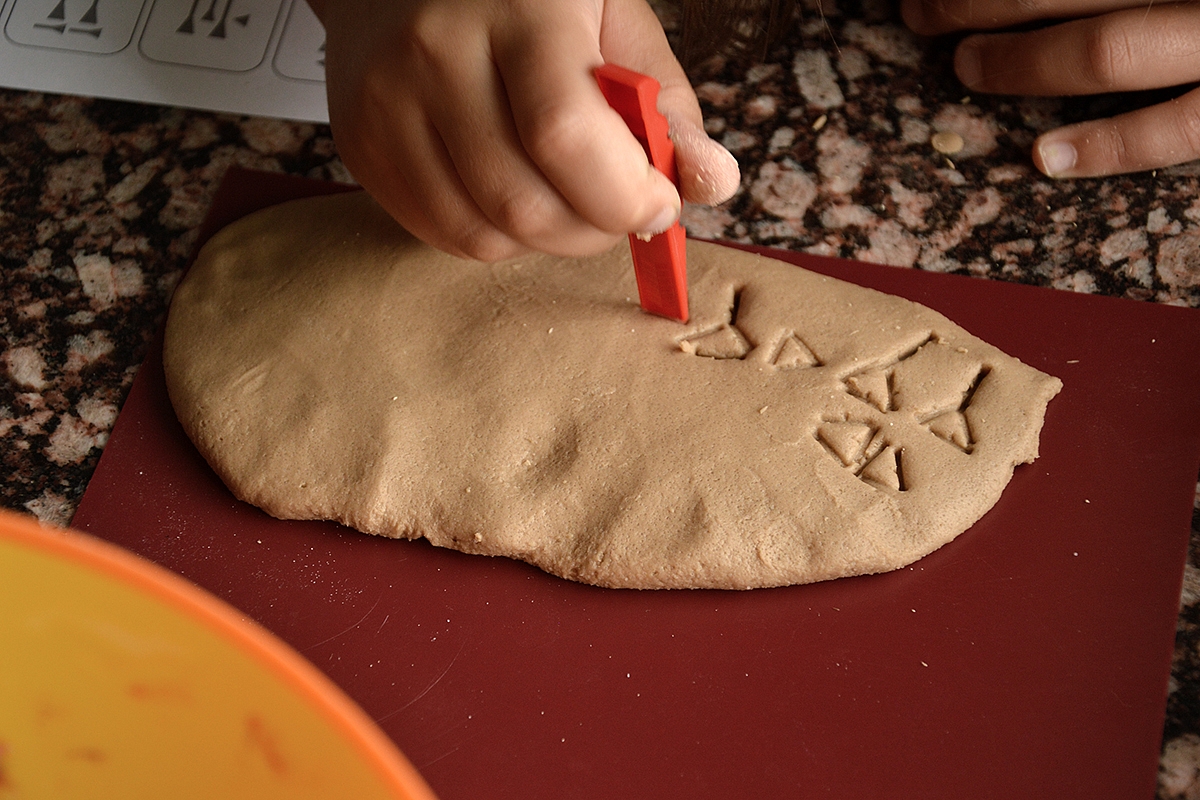 Pirmiausia gaminom savo "molį" (druskos tėšlą). Baltą tešlą mėginome nudažyti molio spalva (išgauti molio atspalvį buvo pats įdomumas).