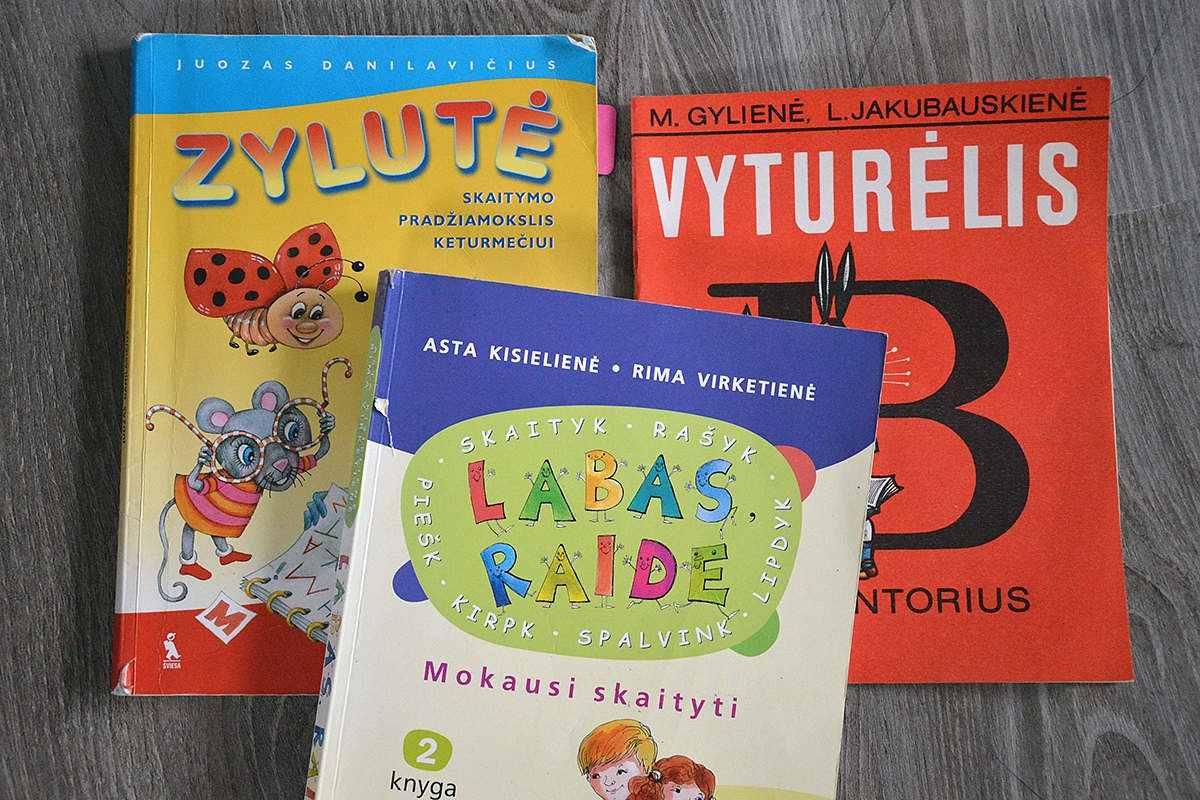 Skaitymui kolkas paįvairindama naudosiu "Šaltinėlį", "Zylutę" (dėl švaraus teksto ir vientisų iliustracijų), "Labas raidę", "Vyturėlį B".