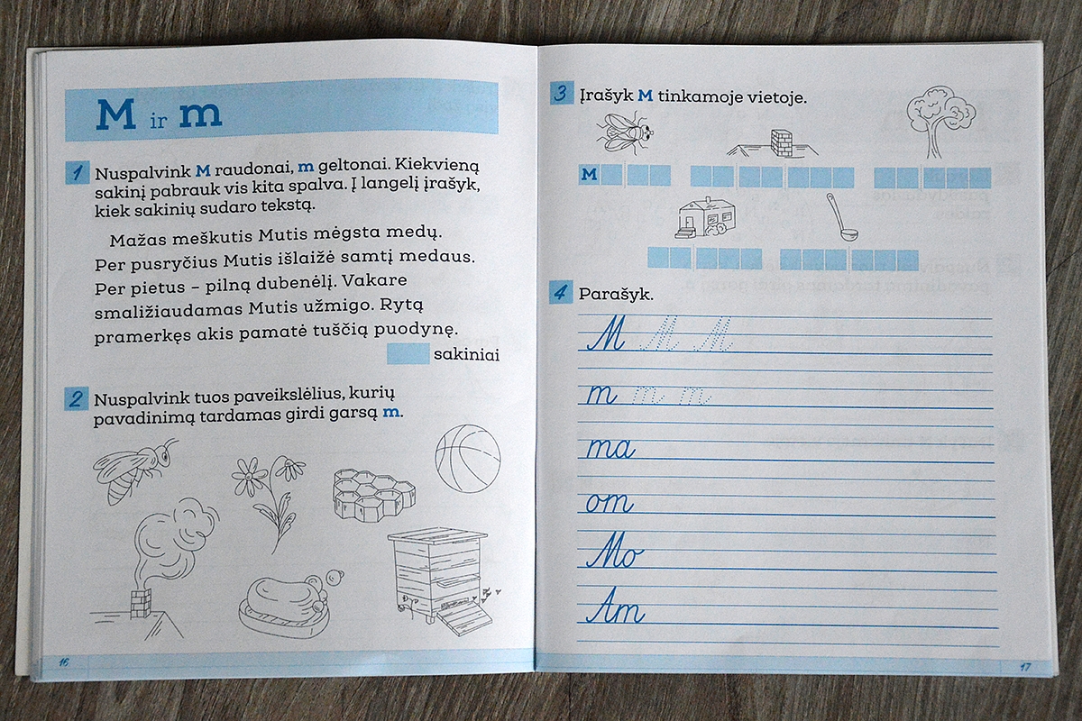 Rašome į paprastą linijinį sąsiuvinį ir į "Šaltinėlio" pratybas.