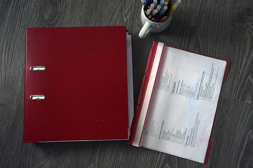 Taigi visą savo atspausdintų lapų gausą suprastinau iki vieno segtuvo ir vieno aplanko. Jie yra visur su manim, visada po ranka.