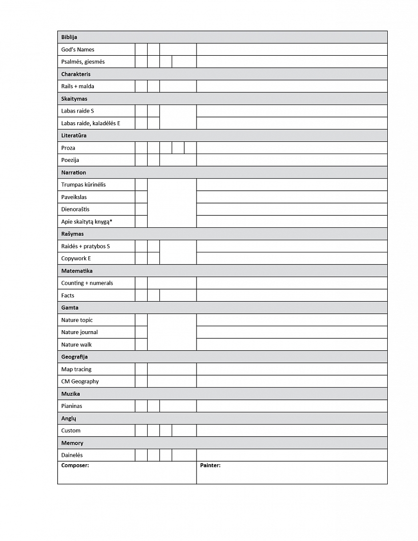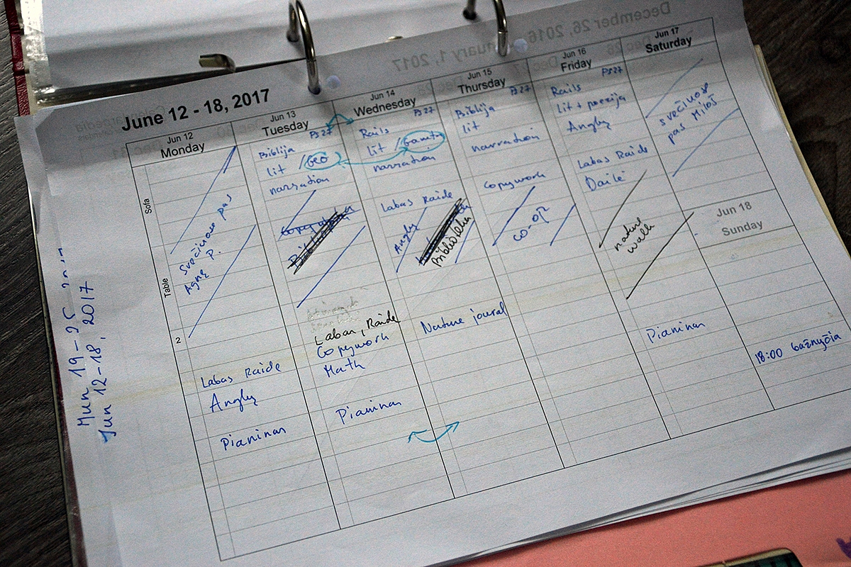 Susidarius dalykų sąrašą, kitas svarbus žingsnis – nepalikite nei vieno dalyko savieigai. Iš karto nuspreskite ką skaitysite, kokią priemonę ar knygas naudosite. Tai labai svarbu. Pastebėjau, kad dalykas (na tarkim literatūra, skaitymas, matematika) paliktas be jokio konkretaus plano būna kažkaip „pamirštamas“, būtent neapibrėžtas dalykas „nebetelpa“ į savaitę, būtent tokio dalyko vis neprisiruošiame pajudinti.