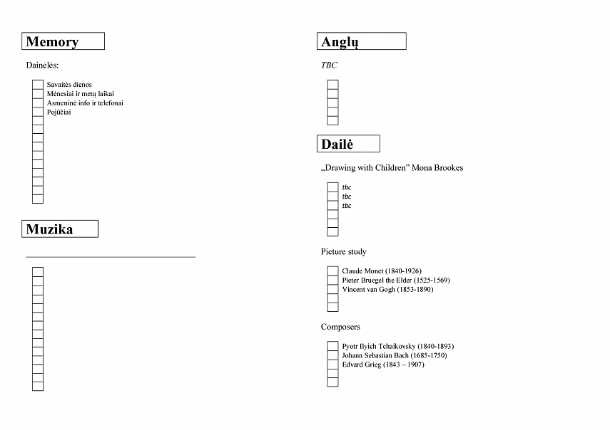 - Mokymosi kalendorius (žymiuosi, kiek dienų mokėmės, kad maždaug žinočiau situaciją)