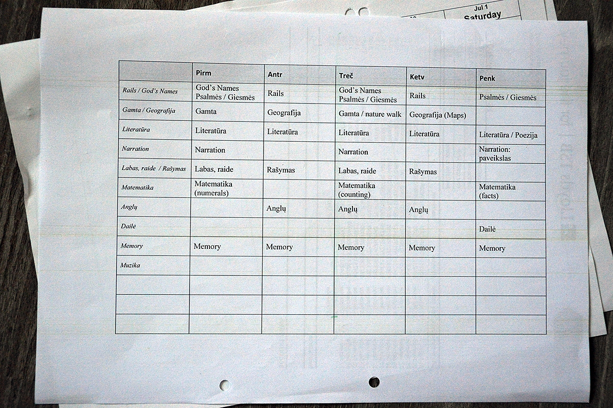 Turėjau nuspręsti, ką su vaikais mokinsimės šią vasarą. Pirmiausia susidariau dalykų sarąšą.