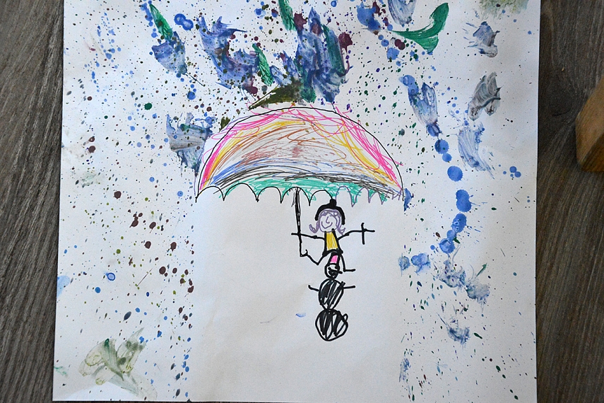 O šią savaitę prisiminiau Pinterest (taip, ta nuostabi platforma, kurioji prisivalgai daug idėjų ir nei vienos neįgyvendini...). Lietaus proga kūrėm tokį smagų darbelį..