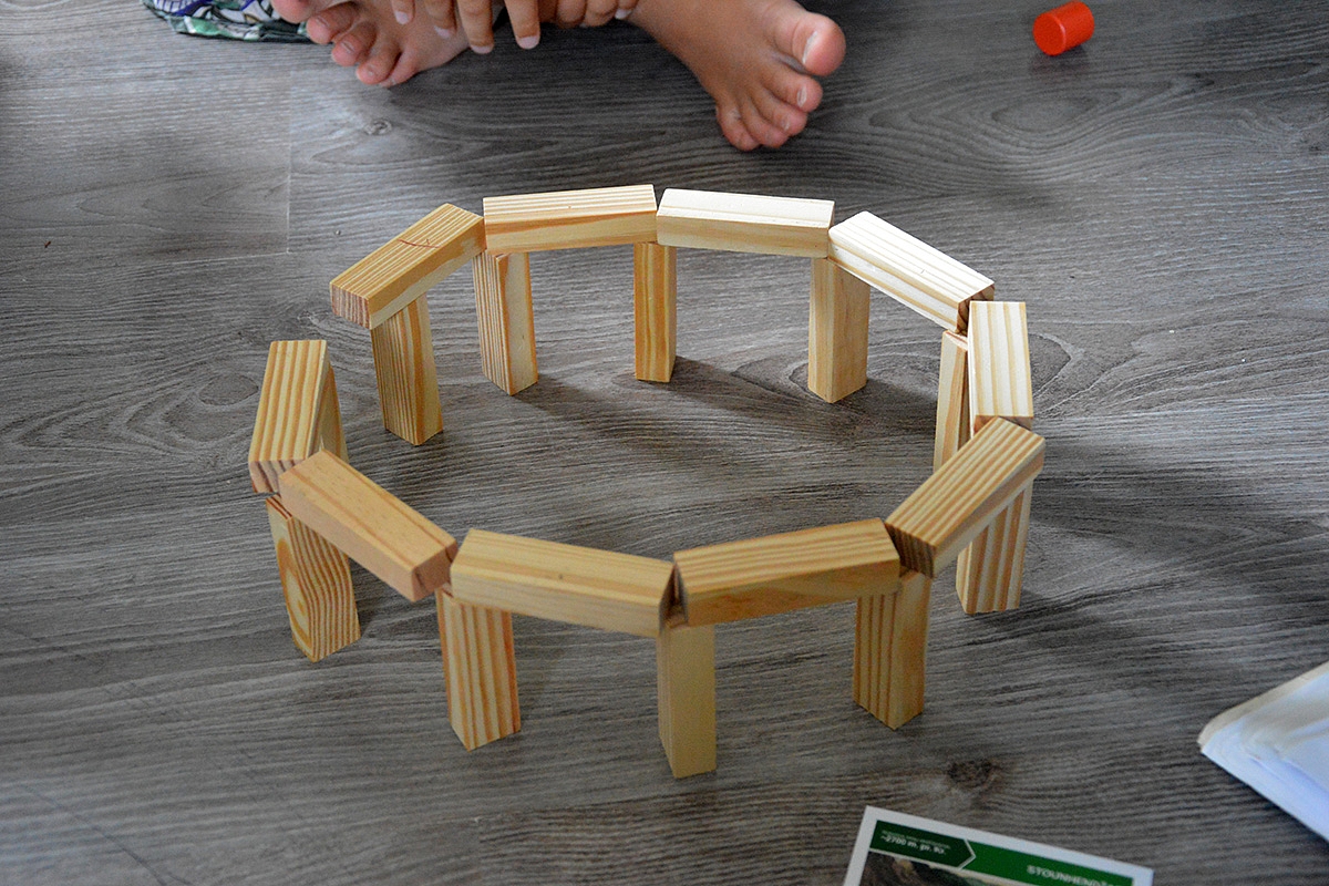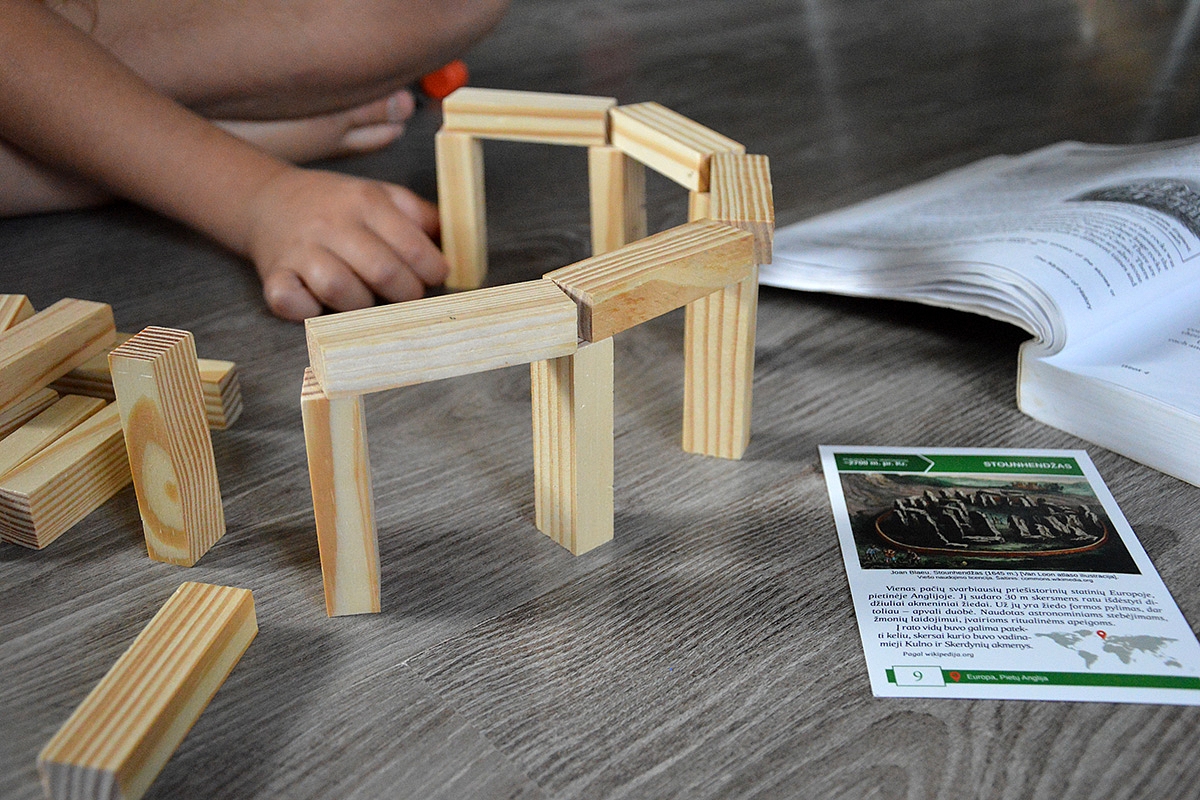 Kartais vaikai nenori nieko žiūrėti per youtube, o ką nors daryti savo rankomis (praeitą savaitę mėginom dantiraščiu užrašyti savo vardus), o šią savaitę vaikai statė savo Stounhendžą.