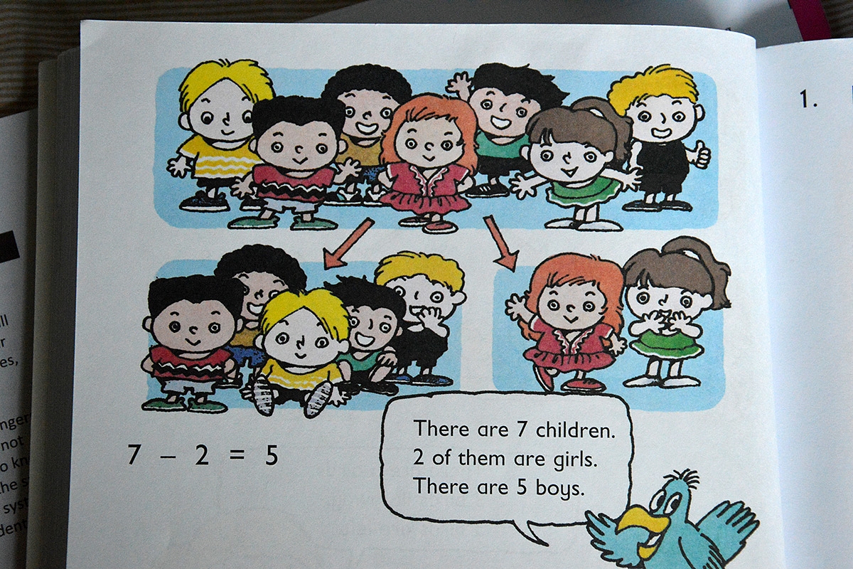 Pirmiausia - Singapore Math prie matematinių tiesų prieina iš situacijos, per piešinius ar žaidimus. O procesas atrodo štai taip: