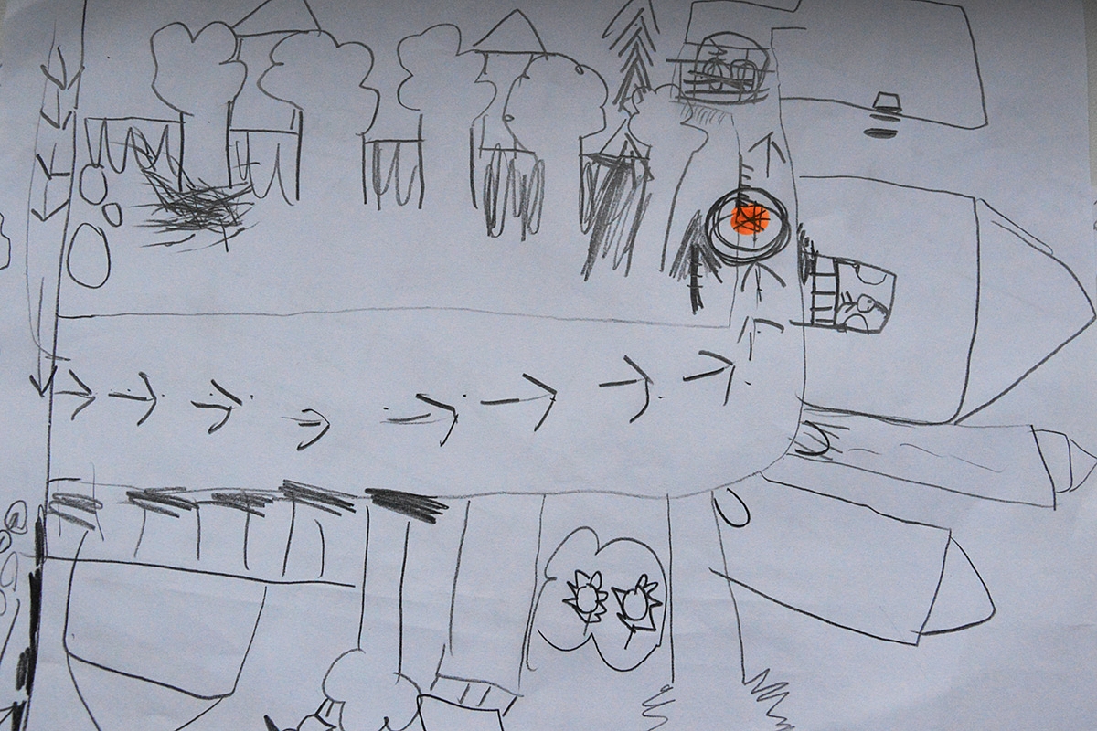Taip pat kalbėjom apie įvairius maršrutus bei žemėlapius. Lyginom skirtingo mąstelio žemėlapius - detalų miesto žemėlapį, šalies žemėlapį. Emilija piešė tikslų mūsų gatvės planą - nurodė tikslią pašto dėžutės vietą mūsų naujai paštininkei, kuri niekaip negalėjo vasarą mūsų atrasti. Pakalbėjom apie prekybos cetrų planus bei pastatų evakuacijos planus.