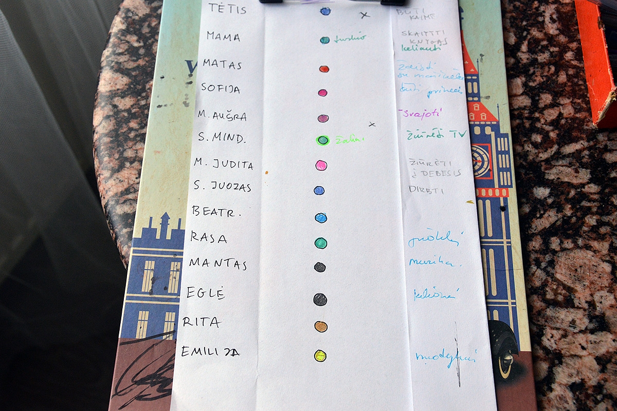 Paskutines dvi savaites darbuojamės visi drauge: visi šeimos nariai tvarkomės su savo šneka. Naudojome tokias eilutes: