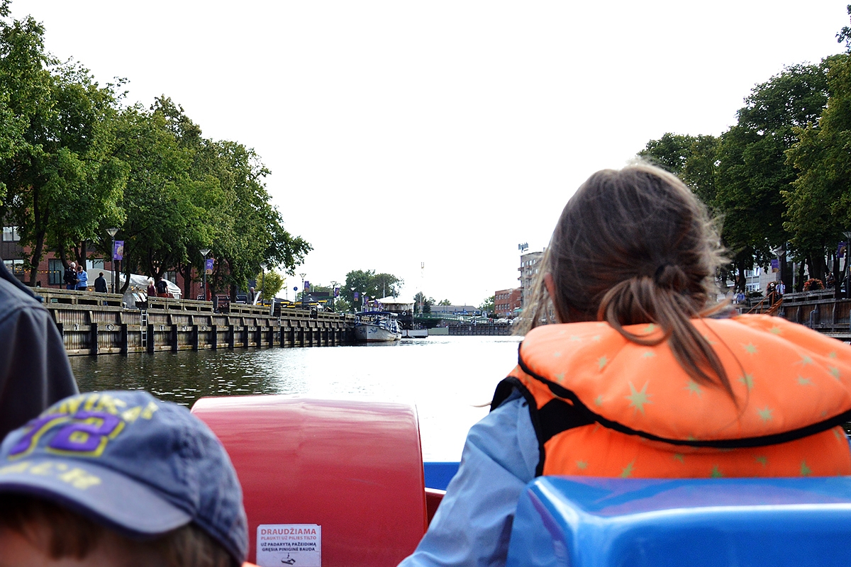 Pasivažinėimas patogiais keturviečiais (bet mes sutilpom penkiese, ir būtumėm priėmę dar kelis vaikus) Danės upe kainuoja 10 eur / val. Mes važinėjomės pusvalandį (kainą skeliam per pusę) ir to mums užteko.