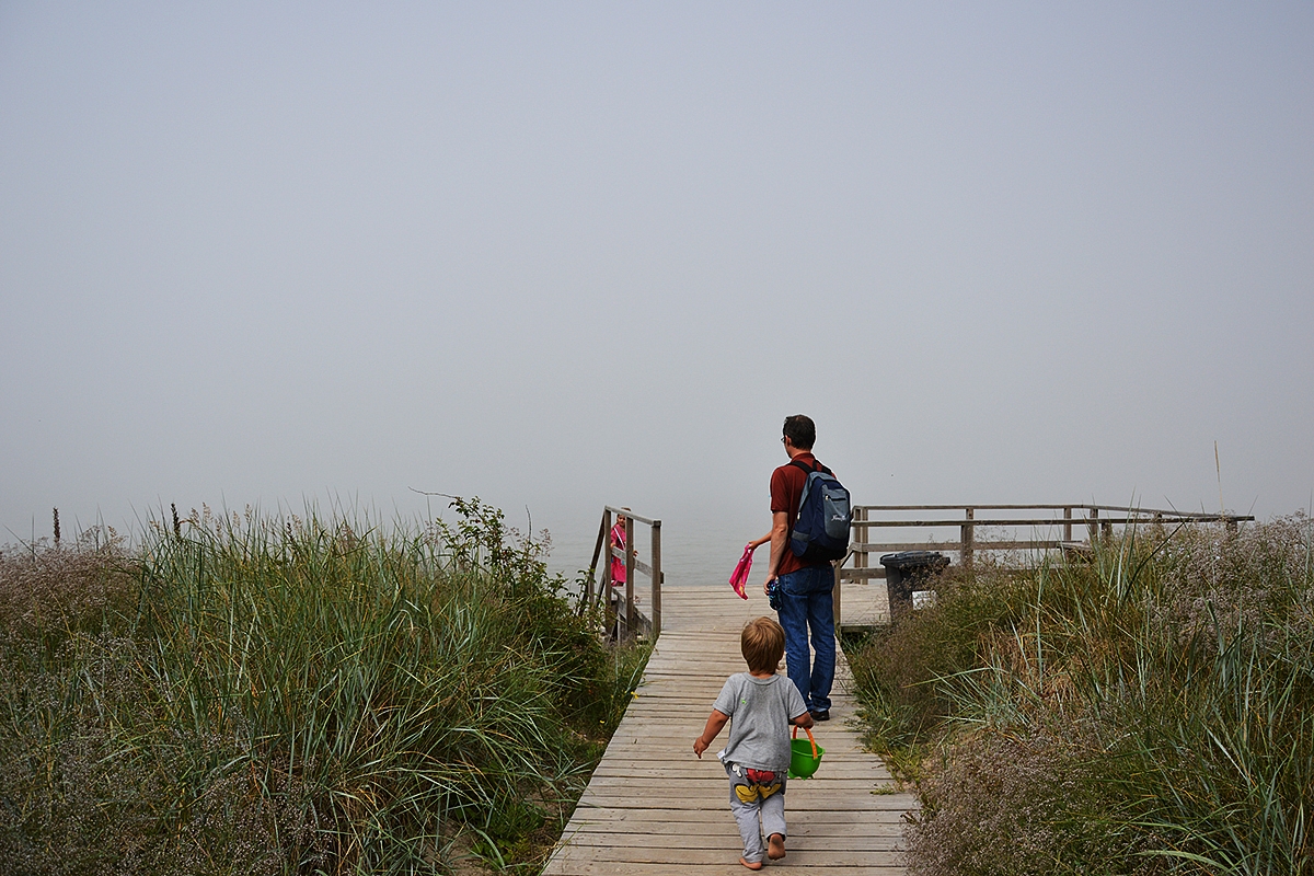 Paskutinę dieną mums tiesiog nuskilo. Prie jūros buvo rūkas. Tirštas. Toks tirštas, kad toliau nosies galiuko nieko nebuvo matyti. Na, hiperbolizuoju. Bet vaizdelis tikrai buvo kitoks...