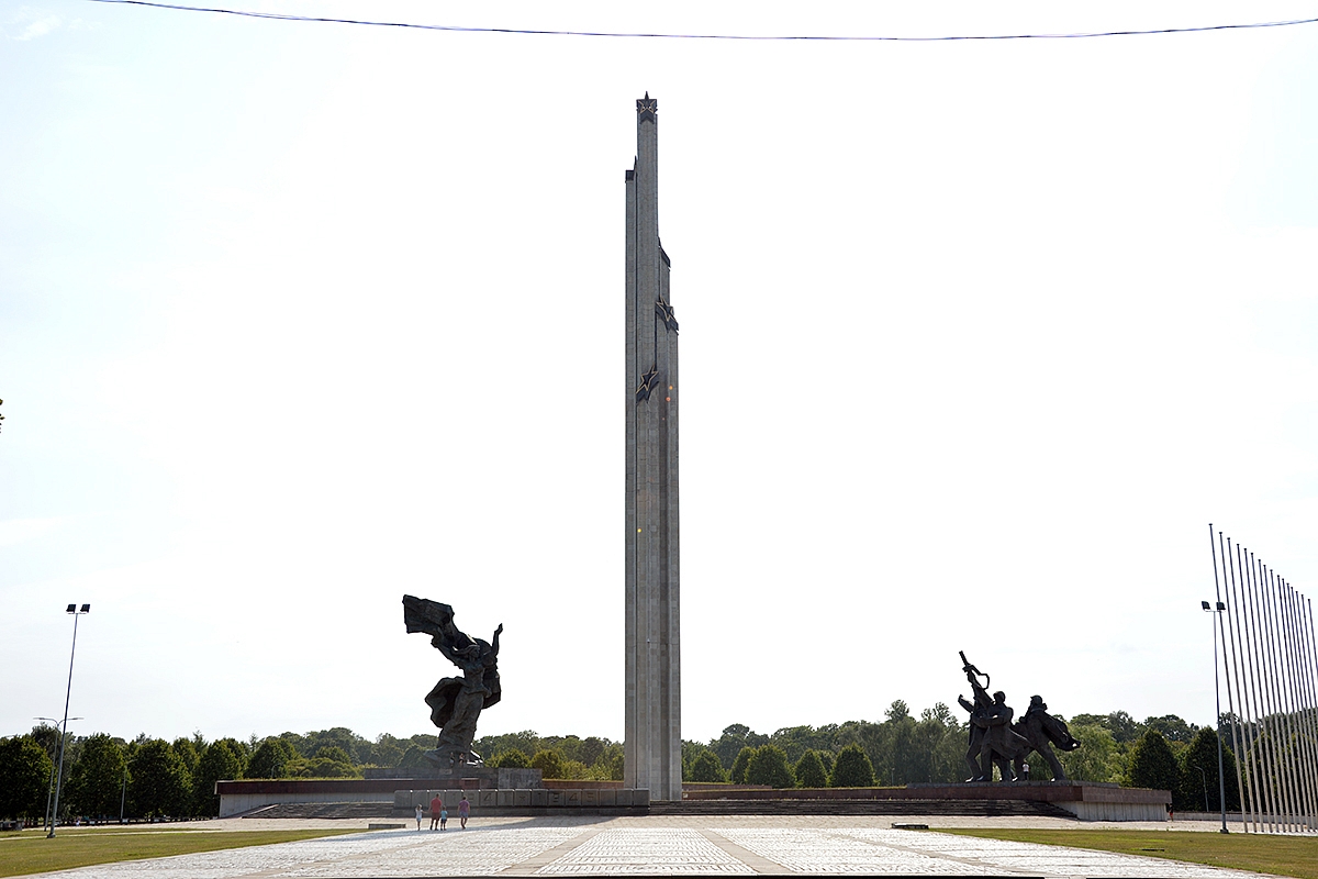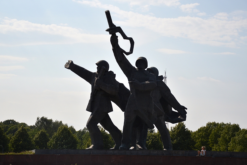 Dar kartą žvilgtelėkite į Nacionalinės bibliotekos nuotrauką (ten viršuje). Matote už bibliotekos pastato toks tartum spyglys išlindęs? Matote? Tas spyglys - tai milžiniško paminklo fragmentas. Pergalės paminklas Sovietų Armijai. Kokios pergalės? Gi sovietų armijos prieš kraugerius nacistus okupantus. Na, bet šiais laikais paminklo paskirtis gal ir nebe tokia svarbi. Labiau imponavo dydis. Tas paminklas išties DI-DE-LIS. Todėl ir verta prie jo stabtelėti. Jei važiuosite su mašina, ją pasistatyti galima visai šalimais gatvėje (pvz. Uzvaras bulvaris). Beje, ten stovėjimas yra nemokamas, tad jei norite išvengti mokamo parkingo, tuomet palikite mašiną čia ir pėščiomis eikite iki senamiesčio (apie 2 km).