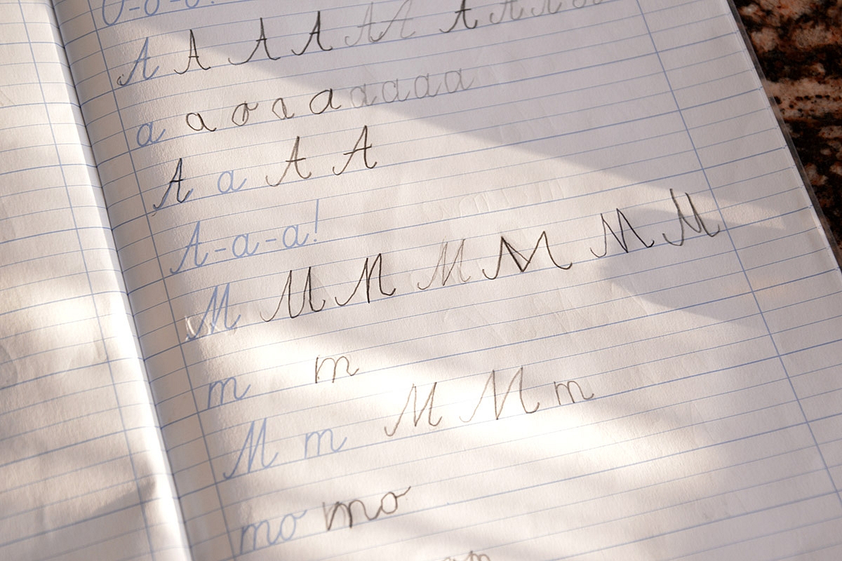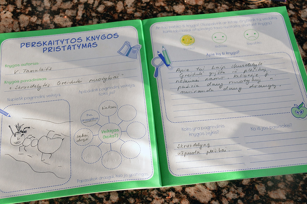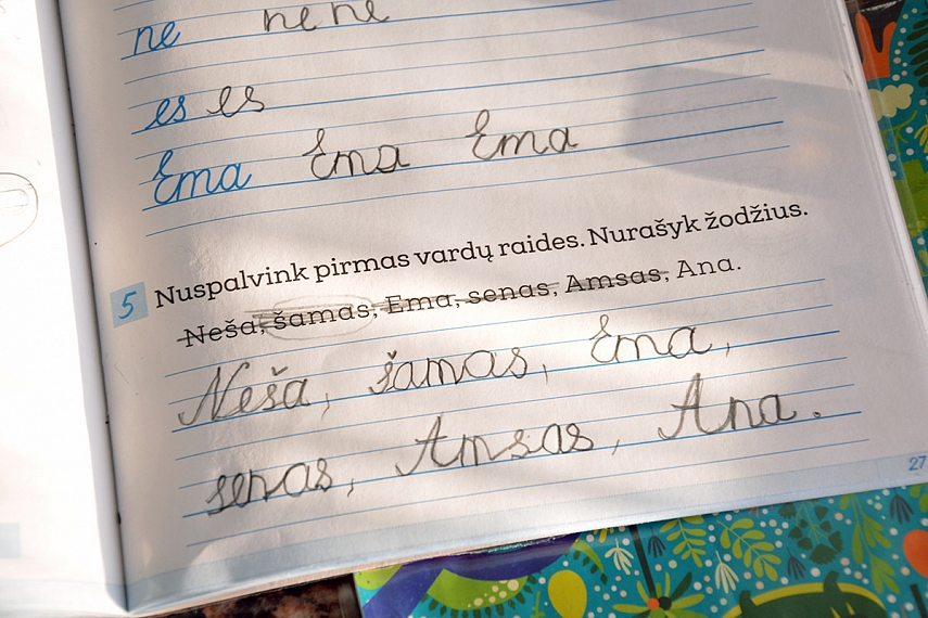 Labai įprastai: dailyraštis, garsinė analizė, skaitymas. Daugiau sausai, nes nebuvo jėgų išradingumui.