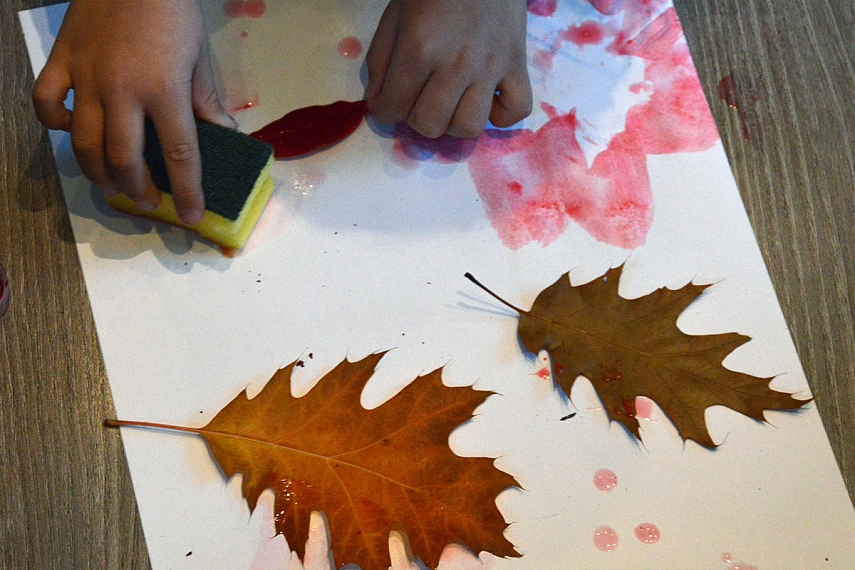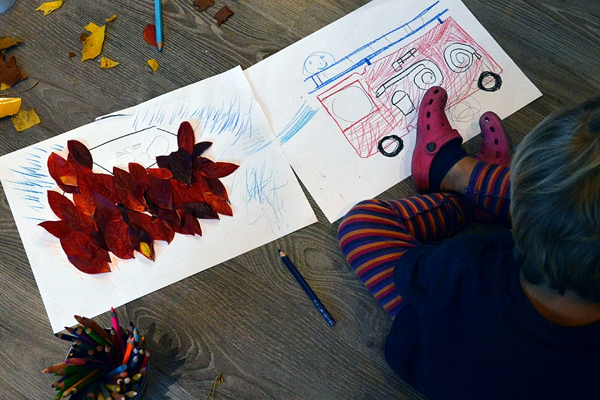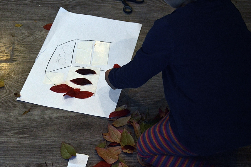 Lapai. Lapai. Lapai. Dažom ant lapų. Spaudžiam lapus. Terliojamės. Verčiam visus namus aukštyn kojom.