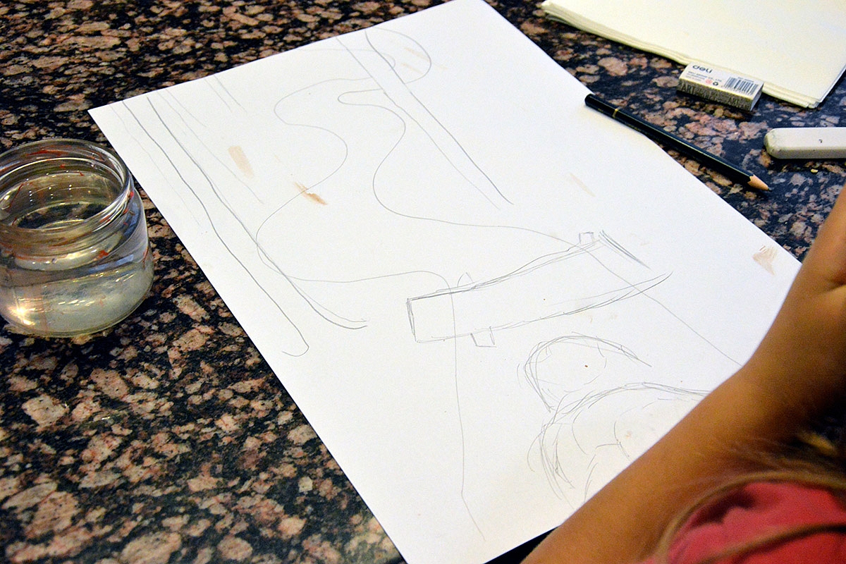 Pirmiausia pieštuku: