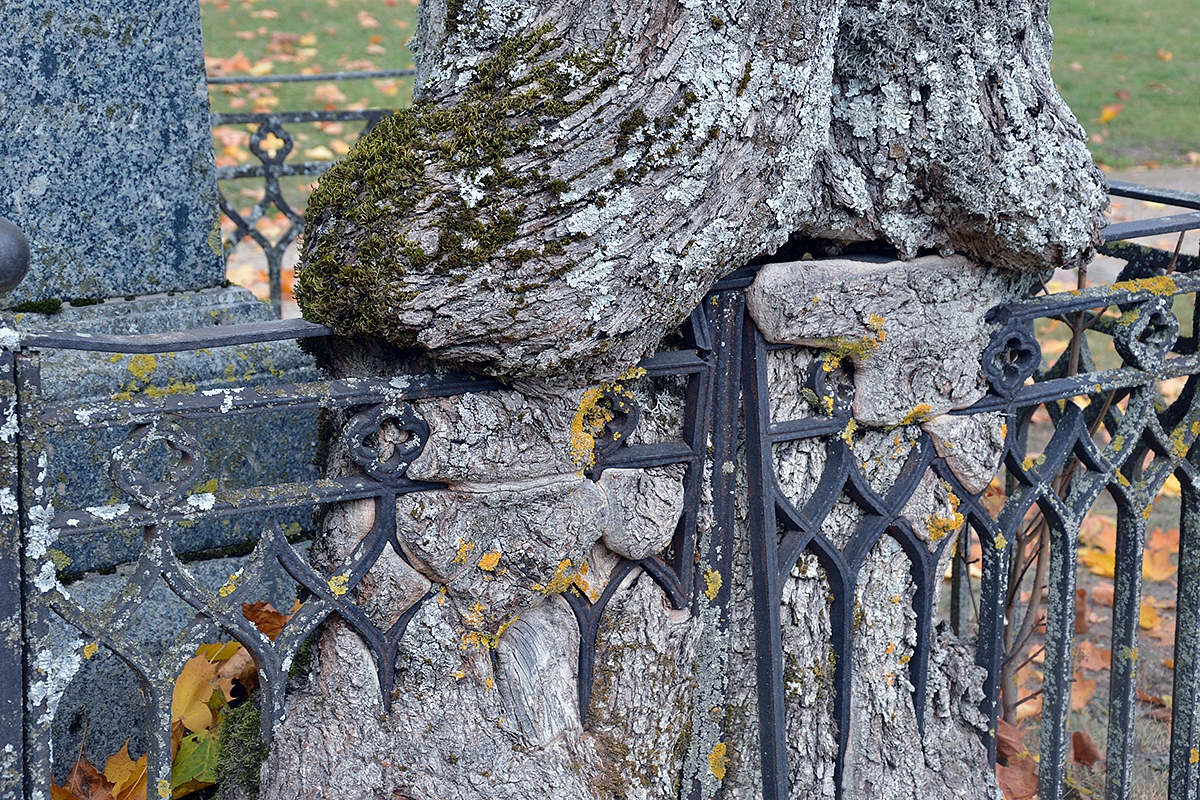 O čia žiūrėkit - medis įaugęs į tvorą... o gal tvora į medį. Vasarą pražiopsojom..